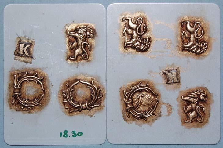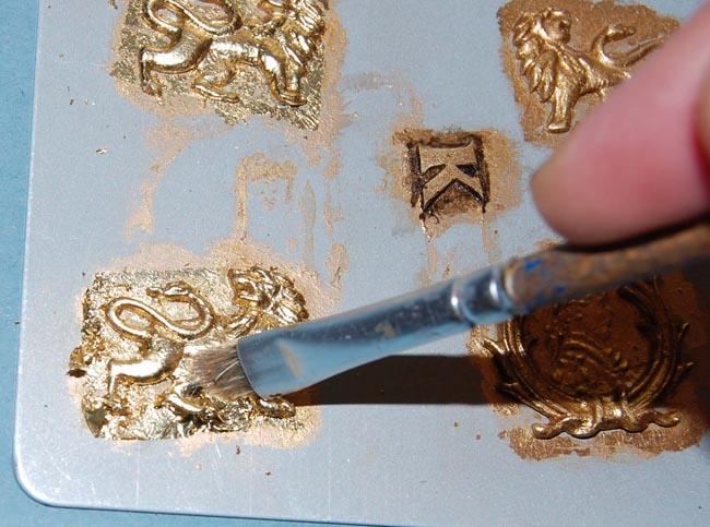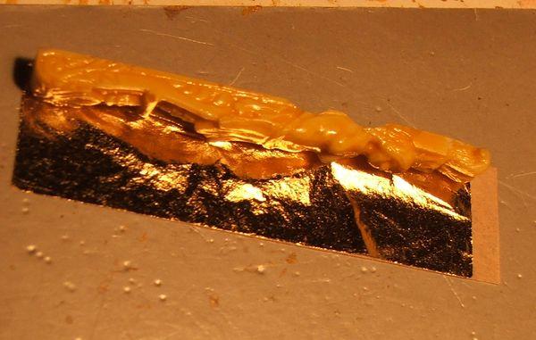 Klej ma kolor żółty I jak są jakieś ubytki to trudno zauważyć .Przed złoceniem powierzchnię zwilżamy aktywatorem i czekamy aż wyschnie ~15 min .Jeżeli rzeźba jest w formie walca lub prostopadłościanu to kładziemy ją na krawędzi płatka i turlamy do owinięcia Potem mocno dociskamy kawałkiem miękkiej bawełny Aby nie uszkodzić ja kładę na kawałku irchy Potem uderzam pionowo miękkim stylonowym pędzelkiem i lekko wycieram i wydmuchuję drobiny złota .Kawałki płatków które wystają delikatnie odrywam , umieszczam w pudełku i nimi uzupełniam ubytki nanosząc pędzelkiem z wł szklanego Klej jest aktywny ~25min Jeżeli nie zmieścimy się w czasie to jeszcze raz zwilżamy aktywatorem W miejscach trudno dostępnych powierzchnię uzupełniamy złotolem W pomieszczeniu którym złocimy nie może być przeciągów , nie możemy kichnąć ani gwałtownie oddychać bo wszystko będzie fruwać Najlepiej pracowac w maseczce p.pyłowej To by było wszystko więcej grzechów nie pamiętam a jakby co to pytajcie Pozdrawiam R