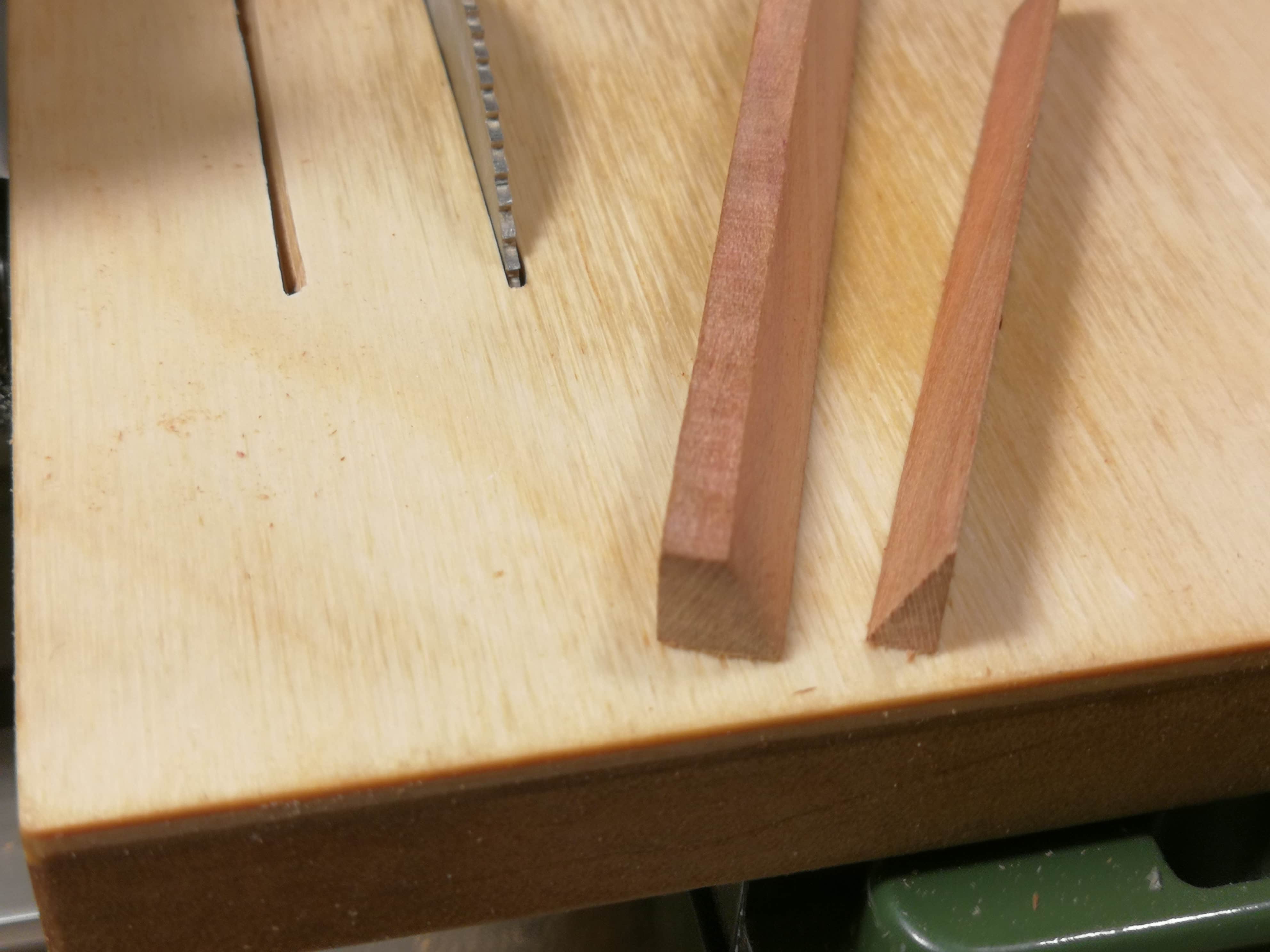 Na zdjęciach kilka detali uciętych pod kątami. Max grubość cięcia ok 9mm, uzyskałem szer listewki do 0,4mm z idealną powierzchnią, bez wyrwań.