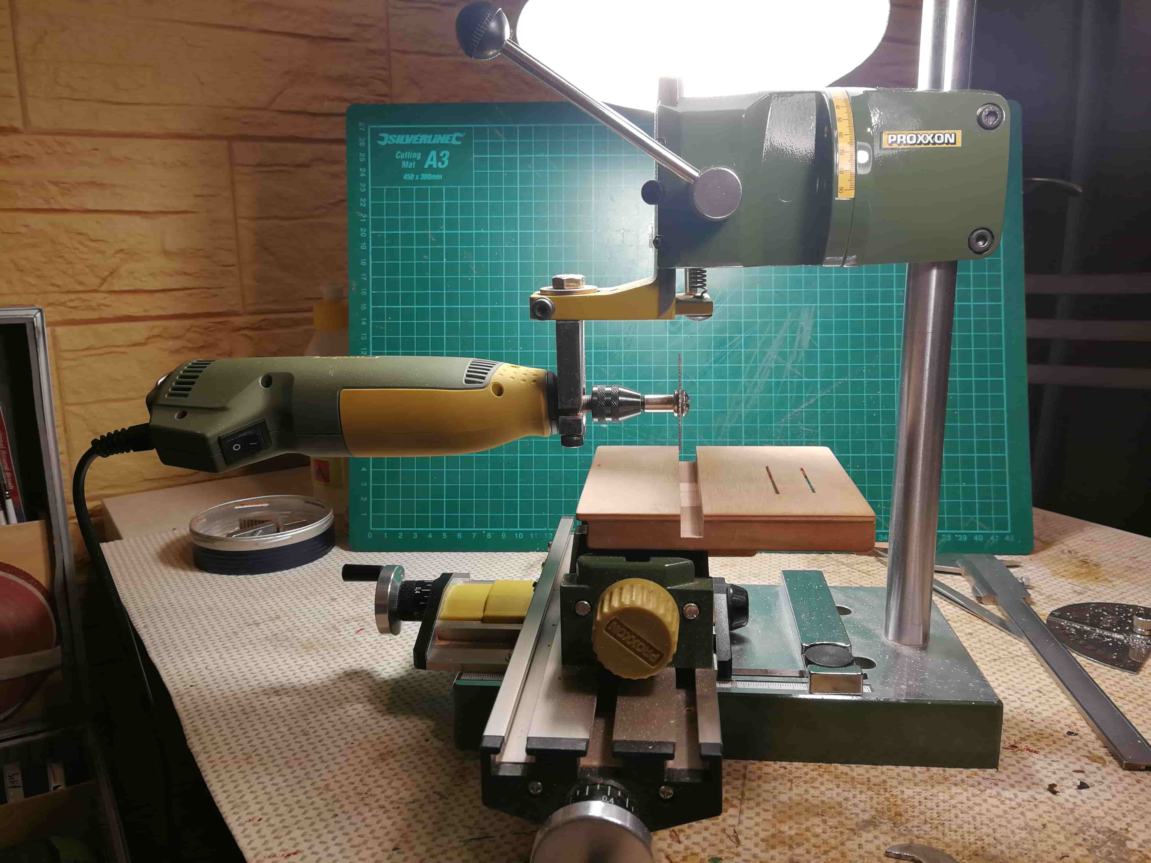 Nosiłem się z zamiarem zakupu Proxxona ks230, natomiast recenzje, opnie i dość wysoka cena jak dotąd nie przekonały mnie do tego zakupu. Postanowiłem zrobić osprzęt do mini frezarki ( typu Dremel, ja akurat używam Proxxon FBS240 ) i mini piłek za kilkanaście zł - średnica największej 44mm i gr 0,8mm z zamocowaniem całości na stojaku i stole koordynacyjnym.