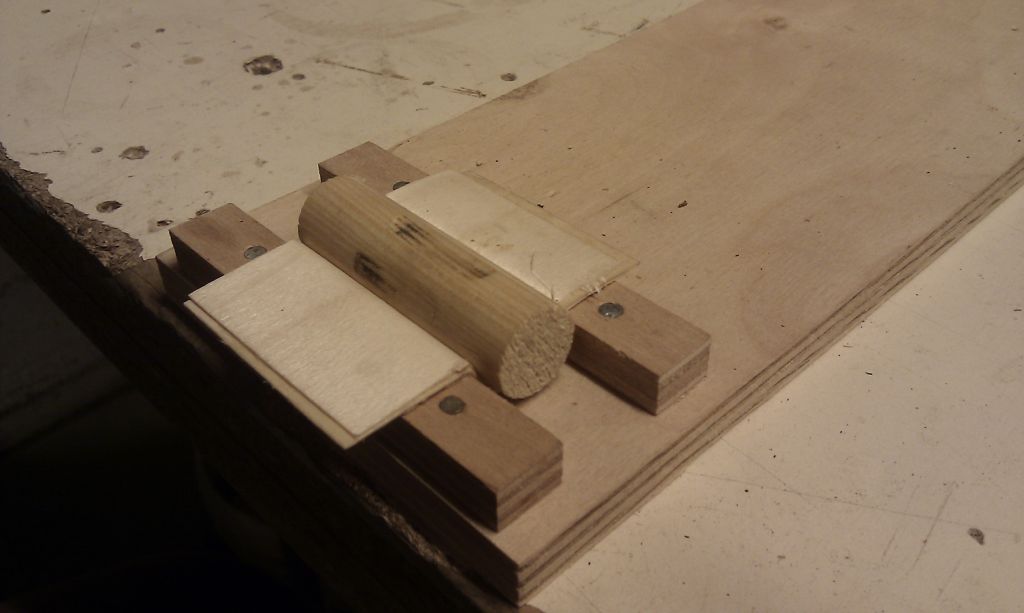 Chciałem podzielić się prostym acz skutecznym sposobem na wykonanie wszelkich elementów giętych z drewna, w tym wypadku okienek półokrągłych. Byc może gdzieś na forum jest ten temat ale może mój się komuś przyda. Potrzebny jest nam fornir najlepiej ścisły gatunek i nie łamliwy, ja użyłem klonu. Wcześniej musimy przygotować sobie tzw. kopyto o odpowiednich wymiarach na którym będziemy wyginać nasze okienko. Układamy warstwowo fornir w zależności od potrzebnej nam grubości najpierw wzdłużnie potem poprzecznie i znów wzdłużnie, czyli naprzemiennie. Moczymy wcześniej w wodzie, wystarczy przez chwilę nawet spryskac wodą, smarujemy klejem i ściskamy na kopycie tak jak na zdjęciu poniżej a oto efekt będzie z tego gzyms nad oknem oczywiście trzeba pamiętać że zmoczony fornir dużo dłużej wysycha więc kilka godzi mu nie zaszkodzi