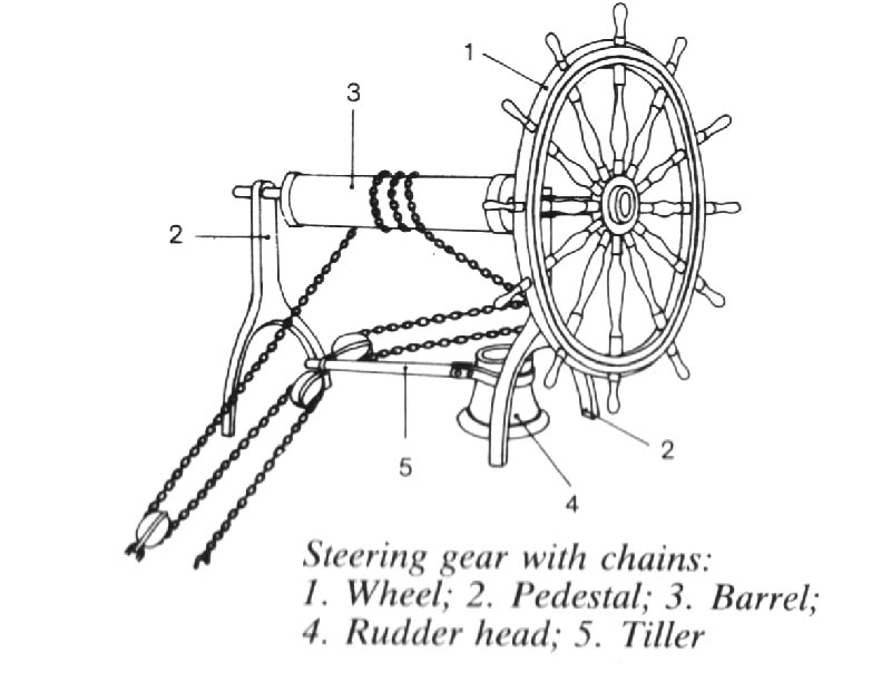 Wygląda na to, że jest to po prostu metalowa obręcz nałożona na rumpel steru. Do tej obręczy mocowane są dwa bloki.