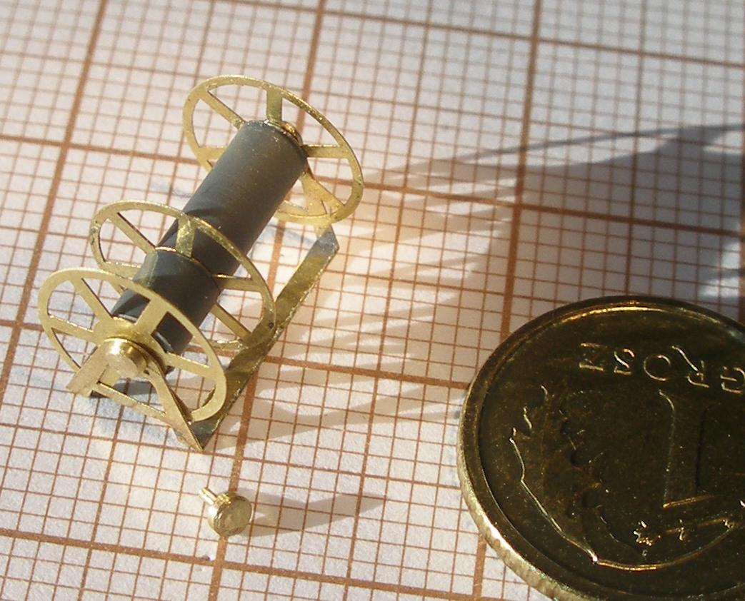 skleiłem trzy koła i dwa walce tak, aby z obu końców wystawało mniej więcej po 0.25 mm igły.