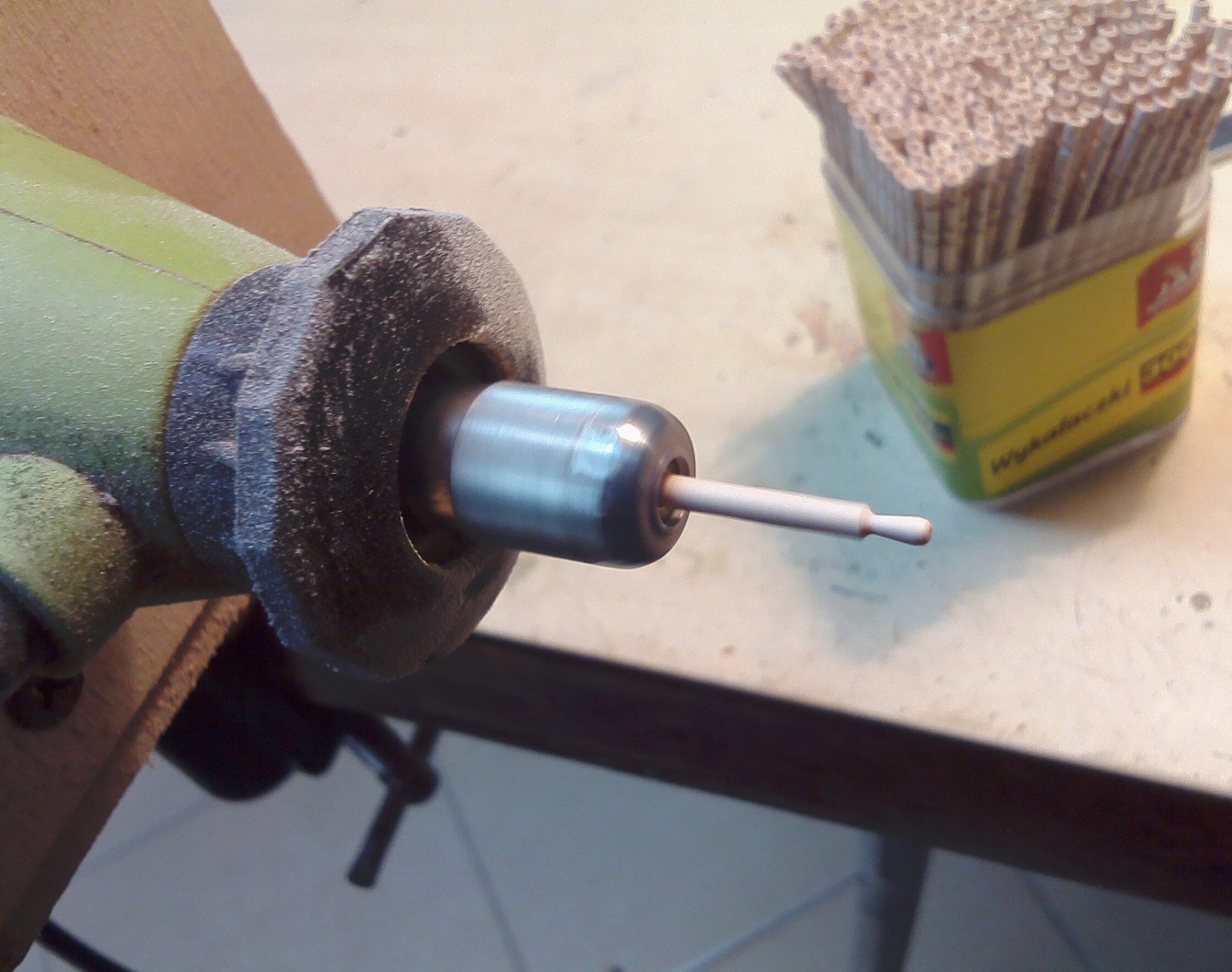 Poniżej przedstawiam prosty sposób na toczenie nagli, tudzież innych elementów, za pomocą dwóch małych wiertarek: