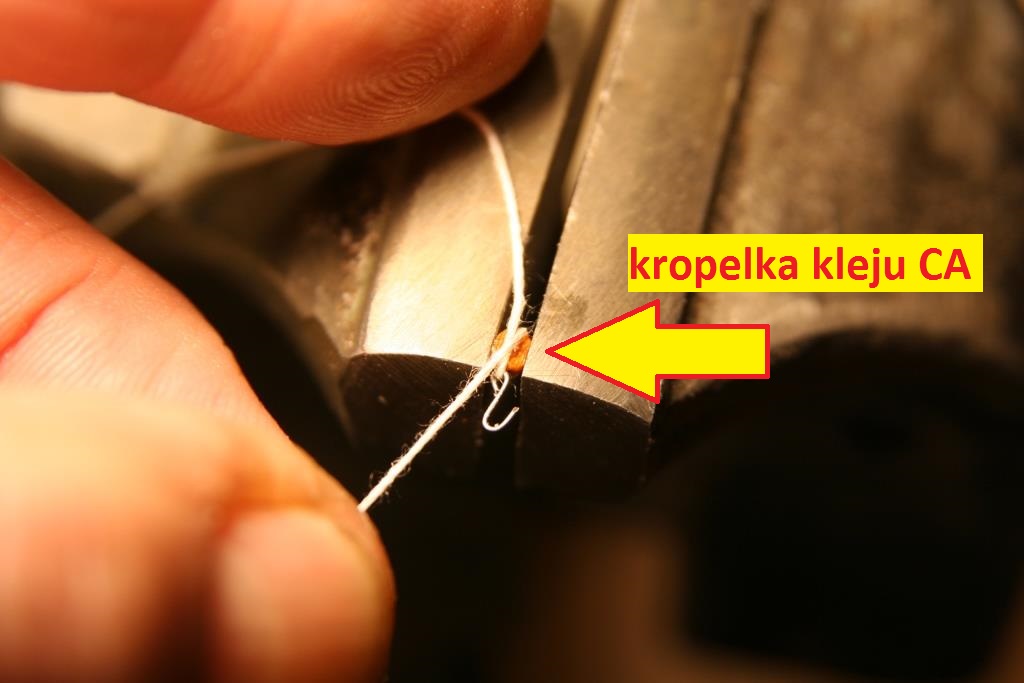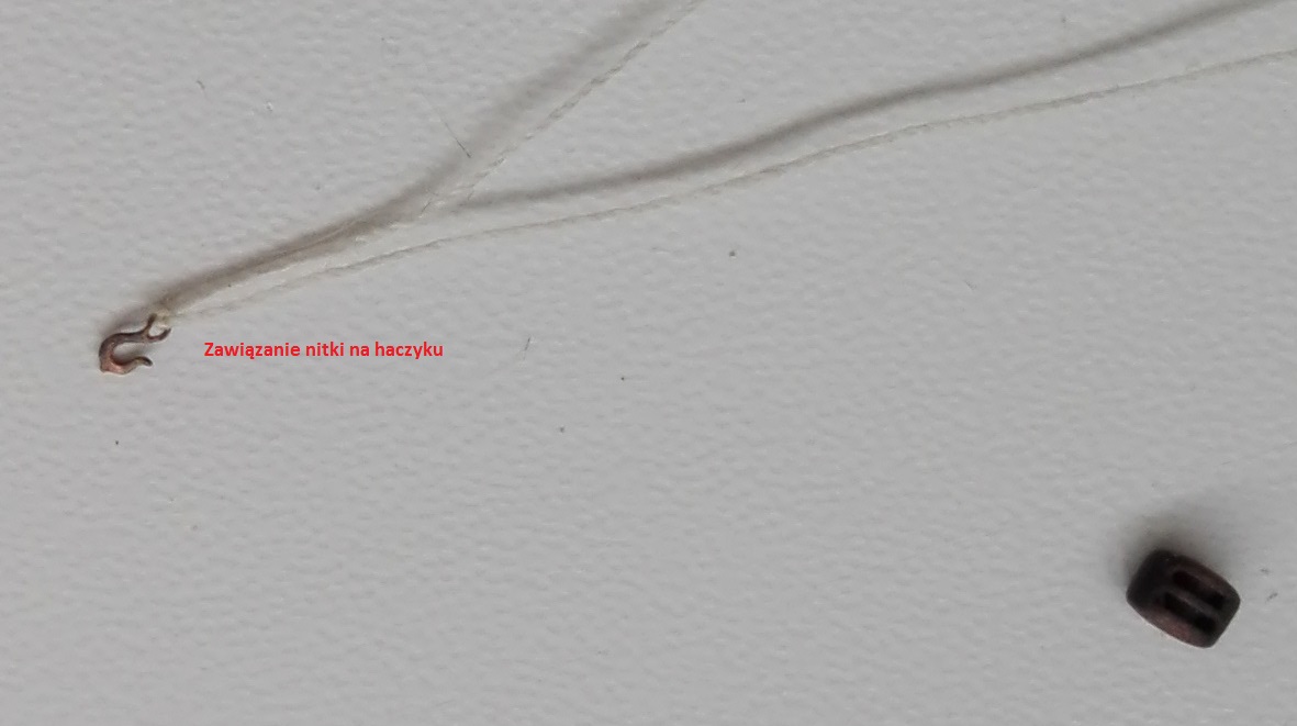 Jestem nowicjuszem, ale spróbowałem wykonać coś takiego. Co prawda bloczki oba pojedyńcze, widzę że wzór jest z podwójnym ale chyba to coś podobne mi wyszło. Haczyki nie czernione bo tyle co ugiąłem z drucika, bloczki własnej produkcji ok 2,5-3mm.