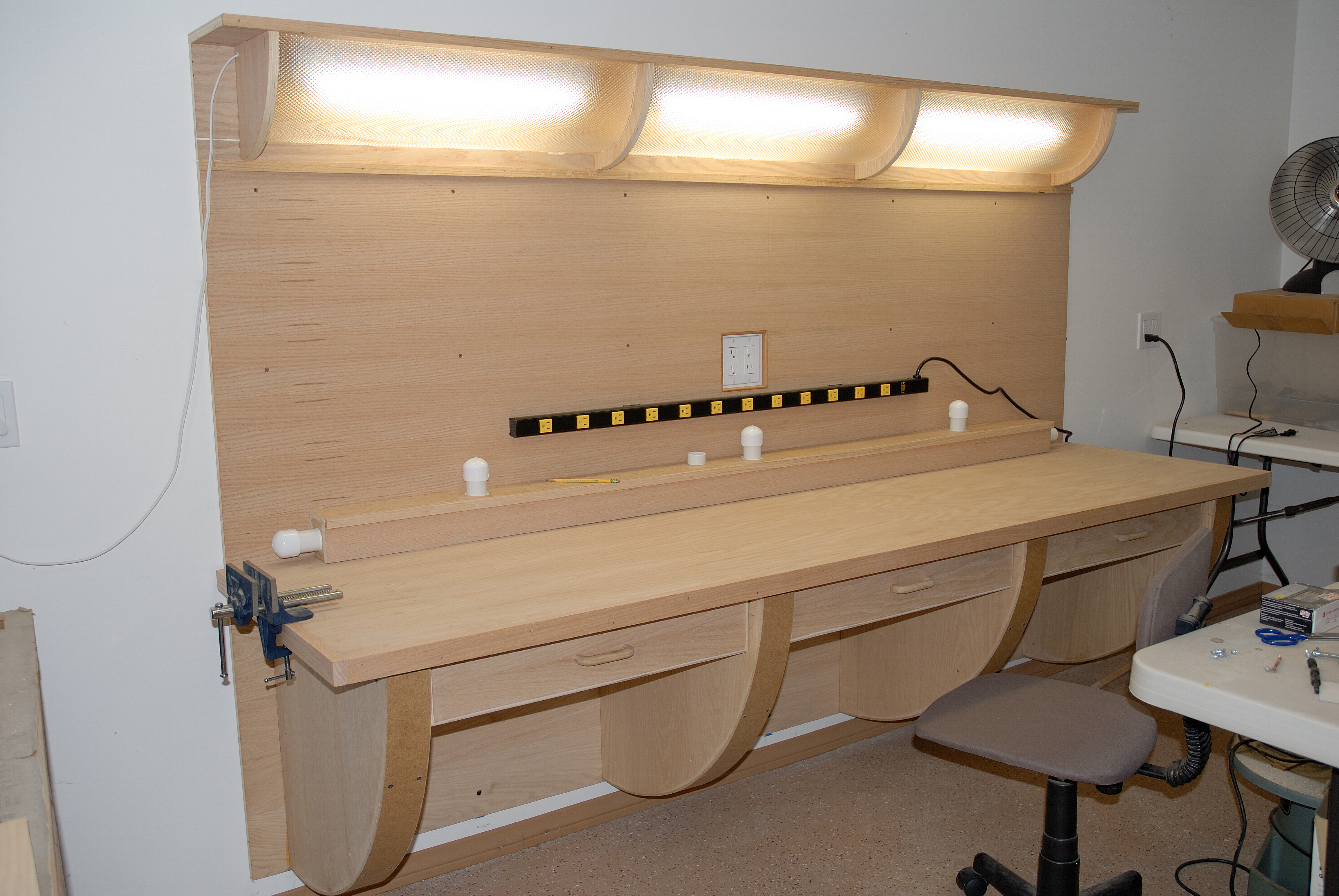 Przed laty zbudowalem sobie w mym pomieszczeniu taki oto warsztat - patrz zdjecie. (Dzis jest tam ogromny balagan i pomieszczenie nie nadaje sie do fotografowania. Ale jakos nie moge sie zdecydowac na zrobienie tam porzadkow - wole ten czas przeznaczyc na modelowanie, a poza tym zaraz nastepnego dnia znow bym pokoj zabalaganil i zabawa od nowa...)