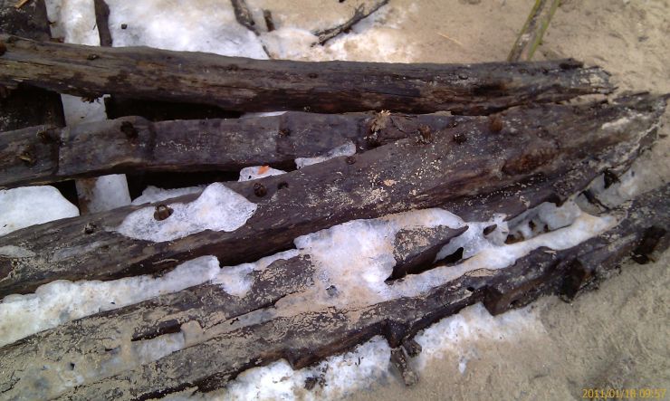 Jak się tak chodzi po plaży, to czasem można znaleźć coś ciekawego. Na razie zamieszczam tylko zdjęcia in situ przesłane mi przez znalazcę, a informacje o tym wraku zamieszczę wkrótce.