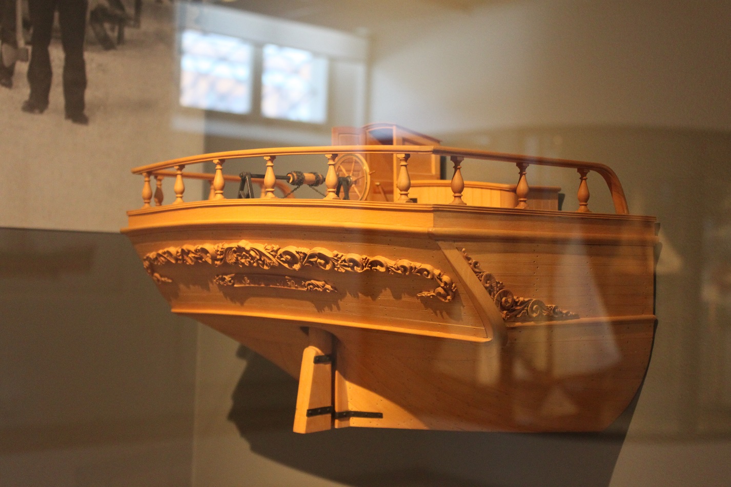 Poniżej rufa szwedzkiego szkunera Amphion, jest to oryginał umieszczony w muzeum.
