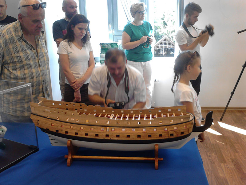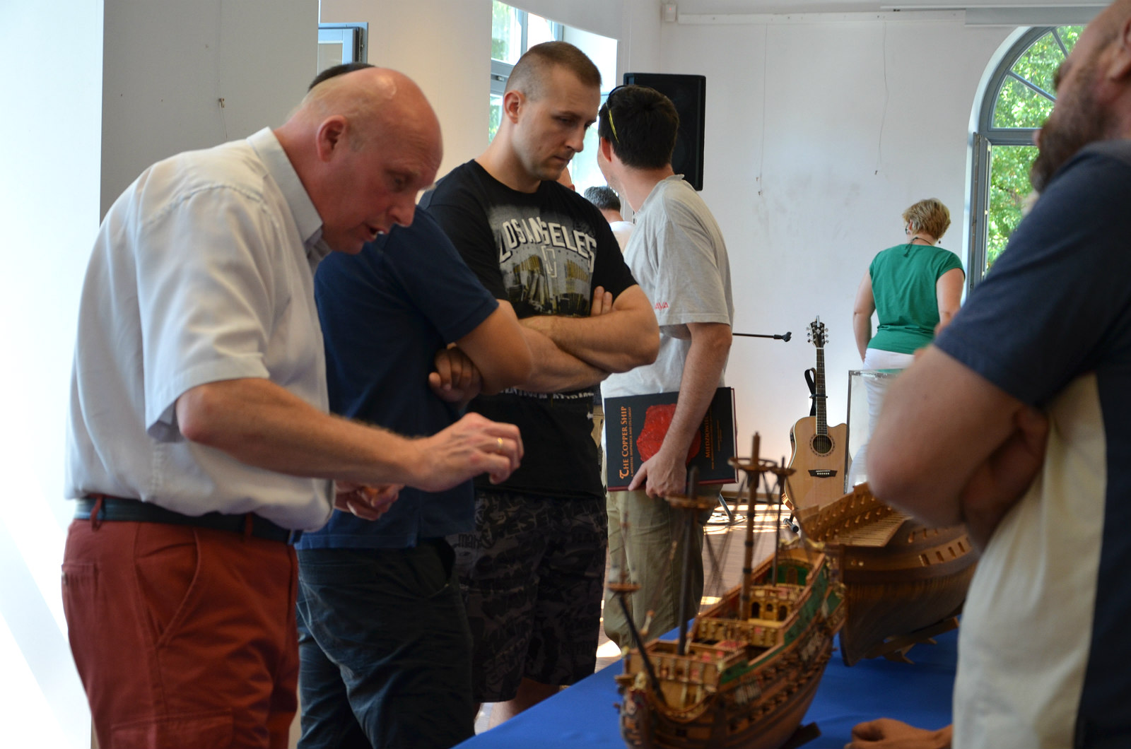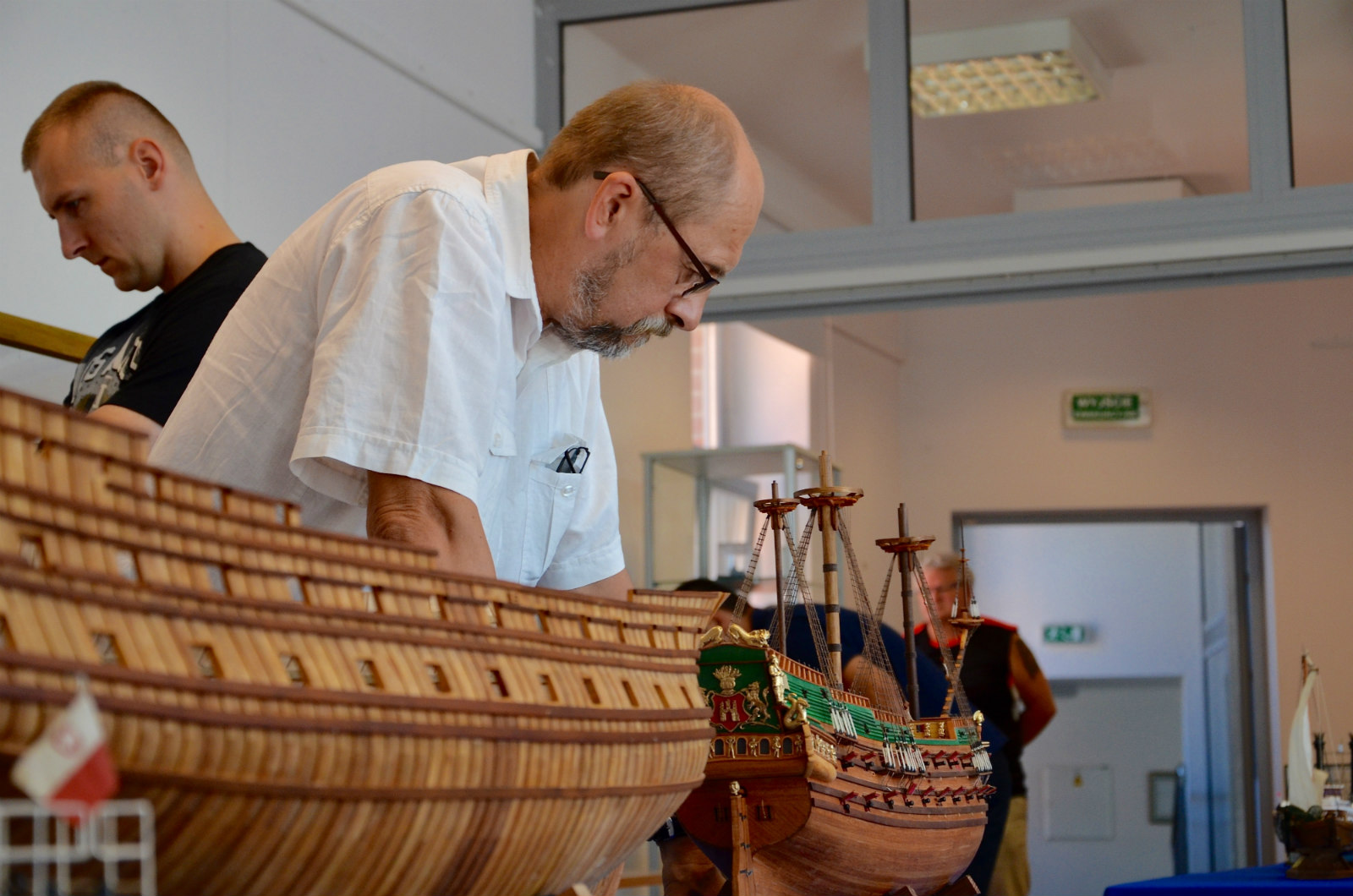 Tu dyskusja nad najbardziej szkutniczym modelem na wystawie. Nie miał wprawdzie żagli, ale będziemy nad tym pracować.