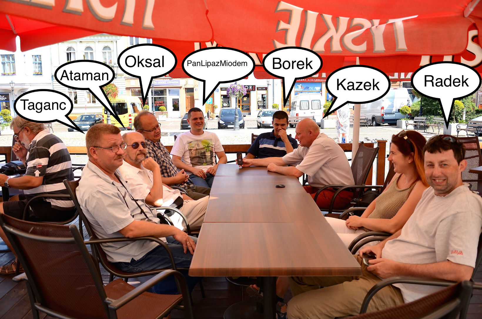 Ponieważ wśród zdjęć, które prezentują spotkania modelarskie zawsze brakuje mi opisu wskazującego na to kto jest kim, postanowiłem jedno ze zdjęć co nieco opisać, i przypisać poszczególnym osobom dymki z ich kogowymi nickami. Powyższe zostało uczynione bez zgody a może i nawet wbrew woli osób zasiadających przy stole. Trudno, najwyżej będziemy się procesować