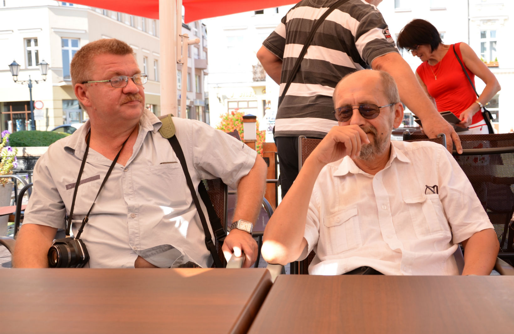 , połączona z merytorycznymi dyskusjami o modelach. Jak zwykle w sobotę udałem się rankiem na rynek, ale tym razem w restauracji Mocca zastała mnie grobowa cisza, nie było żywej duszy, nie miał kto jeść jajecznicy, nikt nie hałasował. Panie kelnerki też były zawiedzione. Sięgnąłem po telefon, celem ustalenia miejsca pobytu towarzystwa. Borek poinformował mnie, że przesiadują w restauracji niedaleko muzeum, podkreślam słowo „w restauracji”. Tczewa za dobrze nie znam, ale okolice muzeum co nieco kojarzę i istnienia restauracji w tym miejscu nie pamiętałem. Idę zatem w stronę muzeum i kieruję się do jedynego znanego mi w tym miejscu lokalu, pijalni piwa. Jest to niezwykle urokliwe miejsce, o nienachalnym wystroju wnętrza, z romantyczną, przydymioną atmosferą. Przy mocno rustykalnych stołach, na ławach tapicerowanych aksamitną w dotyku falistą tekturą, subtelnie i fantazyjnie przymocowaną sznurkiem, zasiadają lokalni degustatorzy złotego trunku. Siedzi tam również Ataman, Lipa, Borek i Oksal (kolejność wymienionych zupełnie przypadkowa). Wszyscy piją piwo z wyjątkiem Oksala, który sączy soczek (oficjalna wersja dla żony). Wybija godzina 12.00, udajemy się do muzeum, gdzie rozpoczyna się oficjalne otwarcie wystawy. Mniej oficjalne otwarcie było oczywiście dnia poprzedniego.