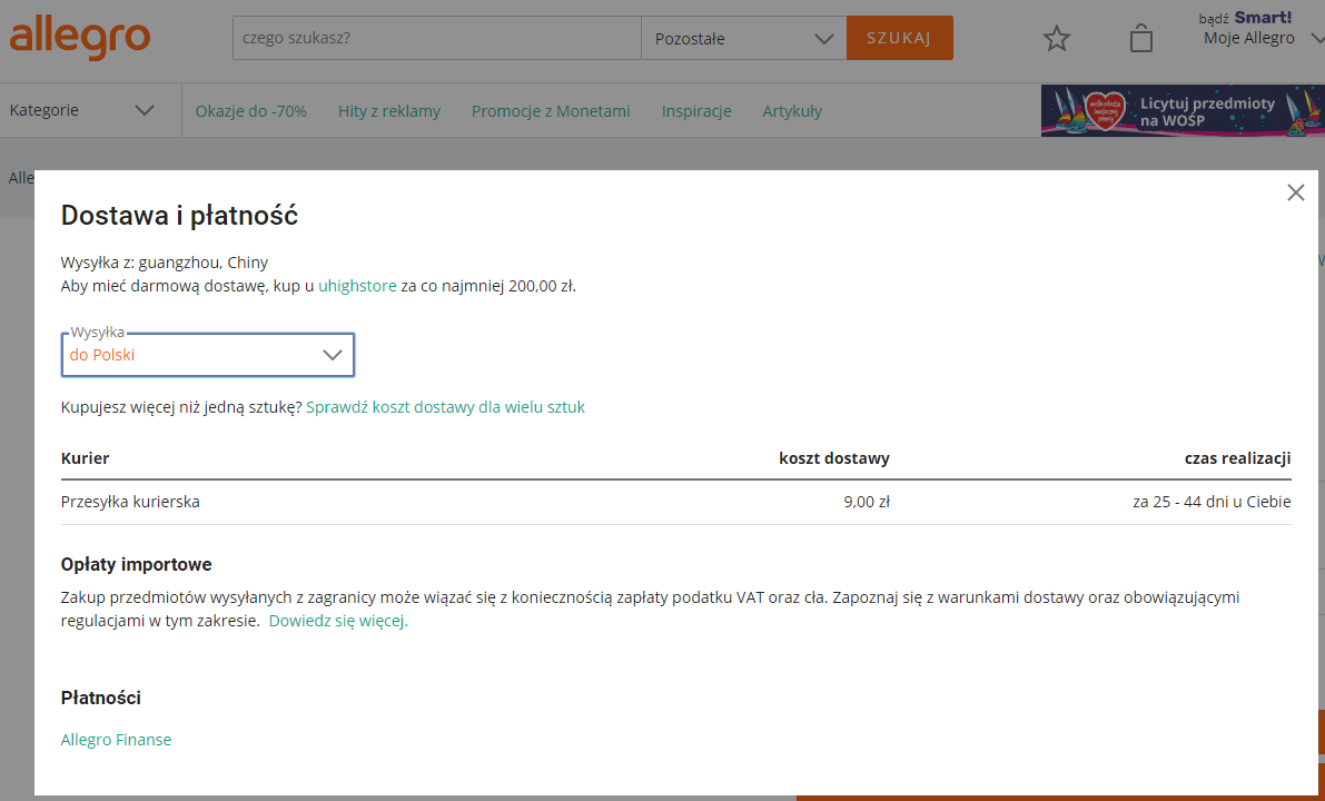 Na Allegro też już przesyłki też idą z Chin, z Alliexpes.