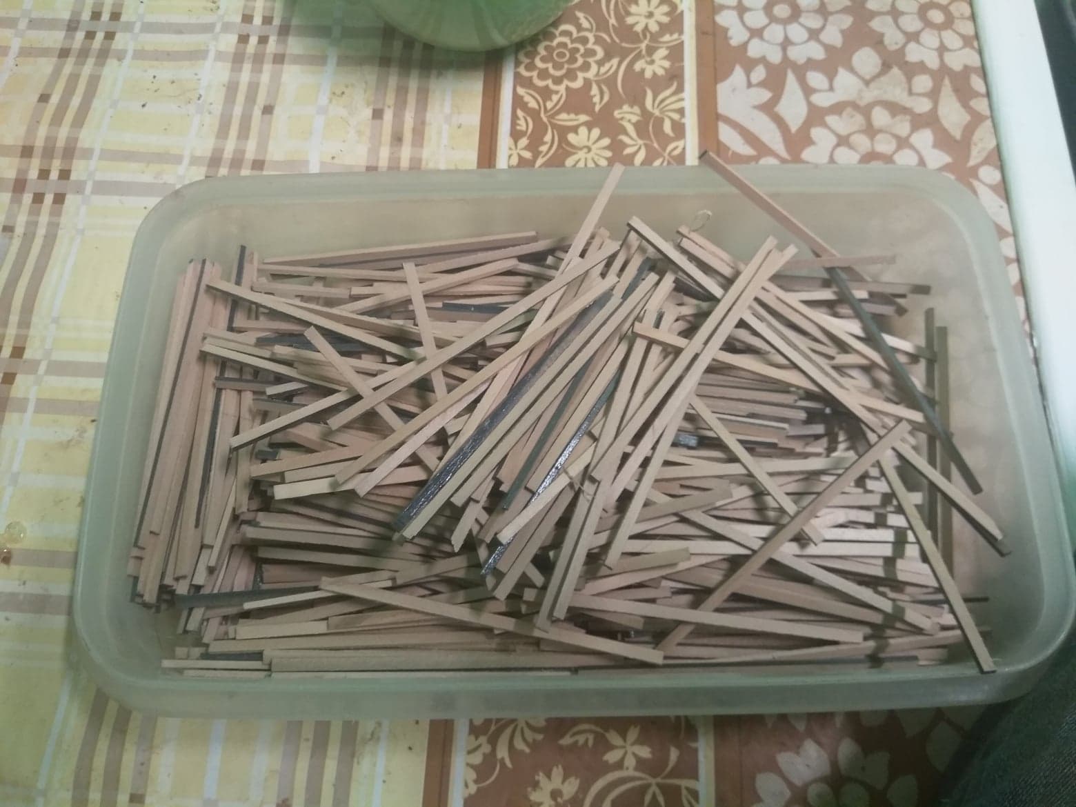Robiłem porządek w modelarni i odnalazłem ok 300 szt listewek , które robiłem na deski pokładu Sobieskiego i zostało tyle.