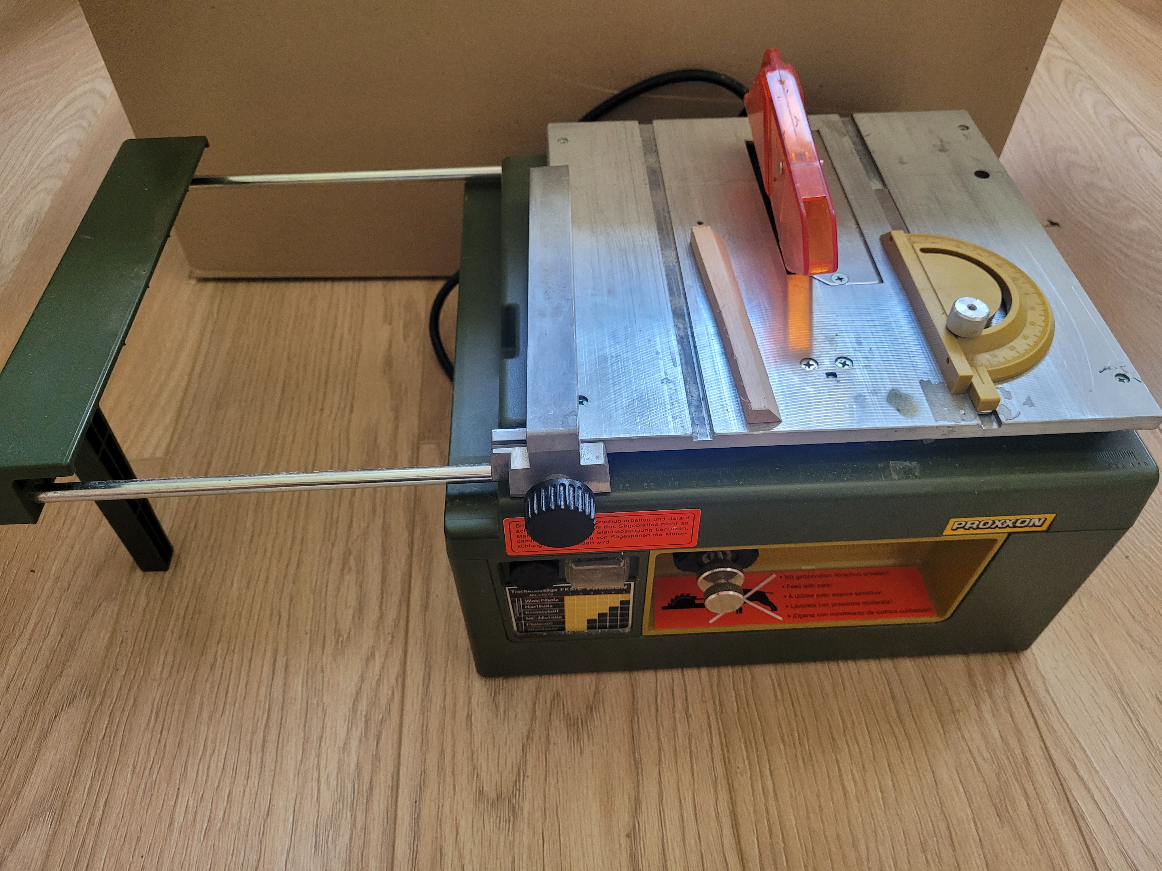 Na sprzedaż mam mało używana piłę proxxon Fks/e stan jak na zdjęciach oceniam na bardzo dobry minus drobne ryski i otarcia widoczne na zdjęciach obecnie wystawiona jest na olx za 900 zł do negocjacji także zapraszam do negocjacji jeśli by ktoś potrzebował takiego sprzętu. Tarcza ostra ładnie przecina na jednym ze zdjęć widać deseczke przecięta pod kątem bodajże olchy.
