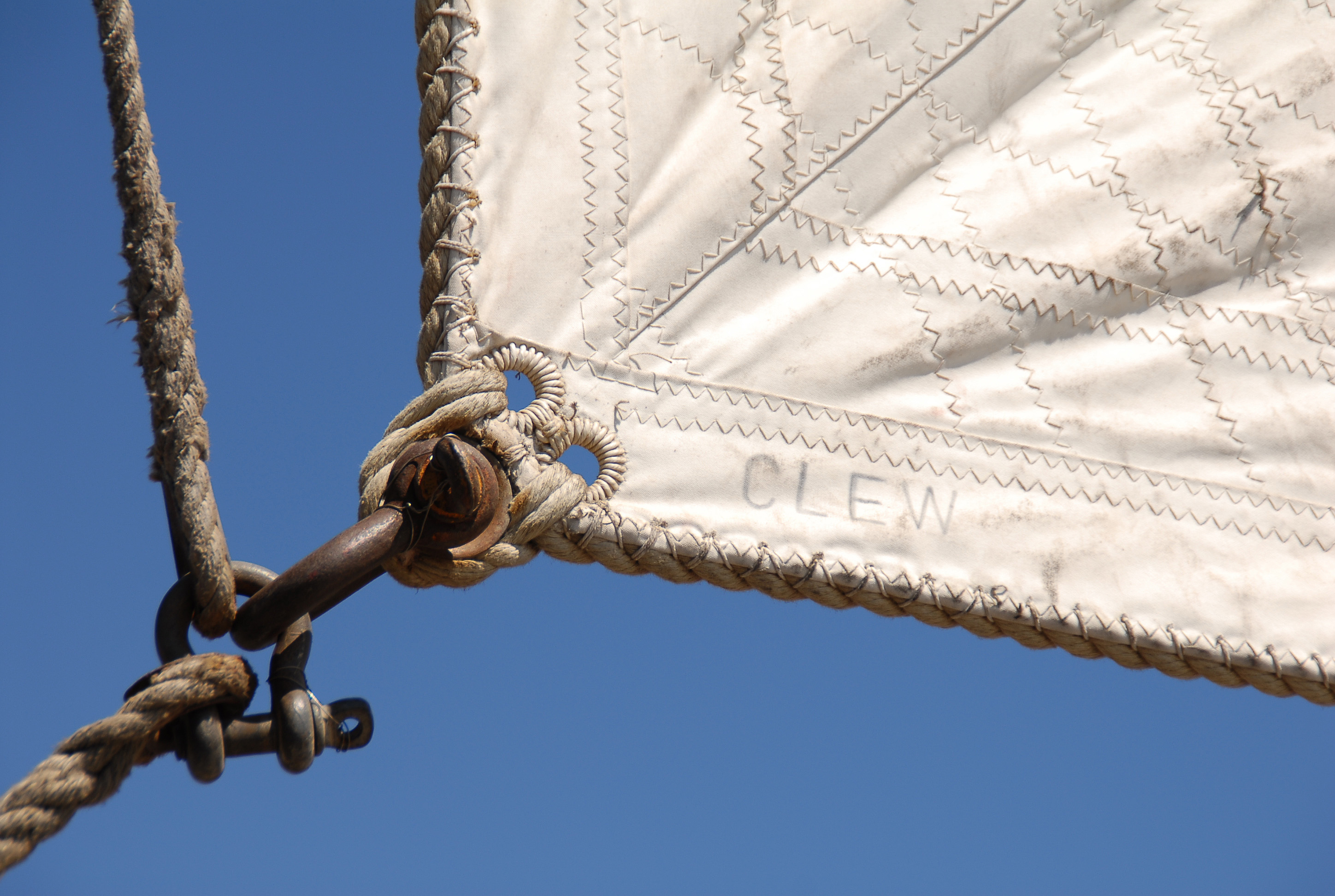 Dla lepszego zobrazowania jak ten detal wygladal na prawdziwych zaglach, zalaczam tez fotke pokazujaca rog zagla na amerykanskim barku Star of India.
