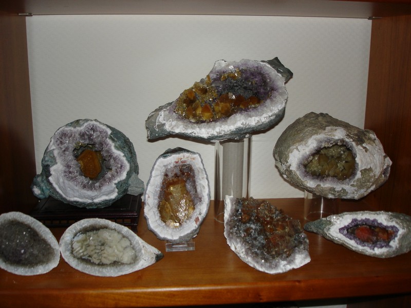 Podczas zjazdu rozgadalem sie miedzy innymi na temat mojego innego hobby, mineralogii. Jest to kolekcja lokalna z okolicy Idar Oberstein. Kwarcowe druzy z krysztalami kalcytow. Kilka przykladow: