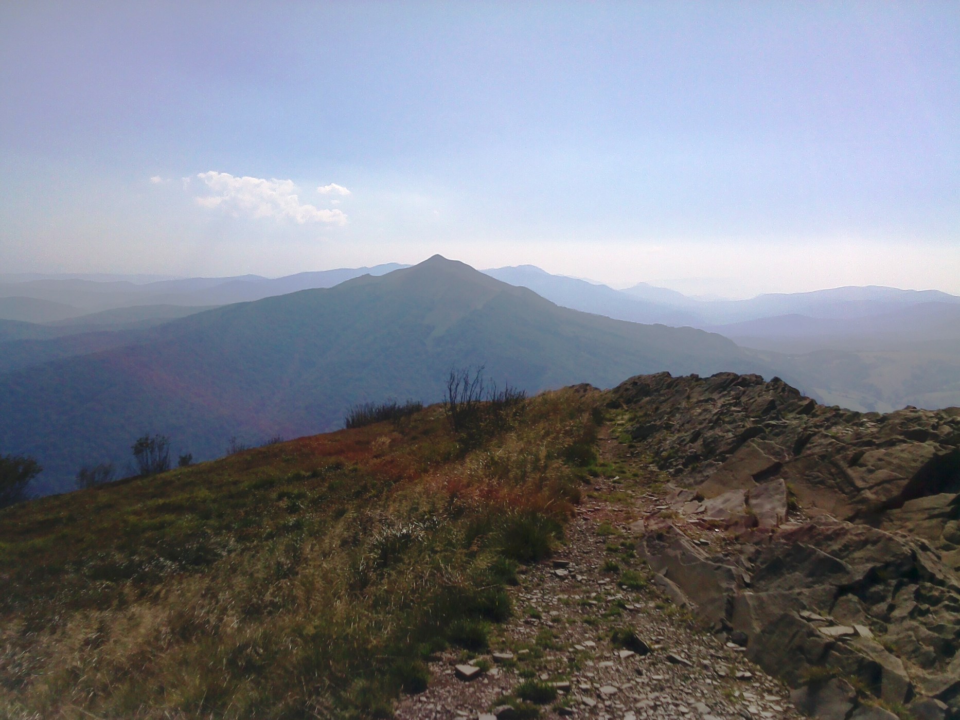 Zdjęcia z sobotniego wypadu w Bieszczady; Widok z Połoniny Wetlińskiej; na pierwszym planie Połonina Caryńska, a dalej po prawej Tarnica. Najwyższe wzniesienie po polskiej stronie Bieszczad: