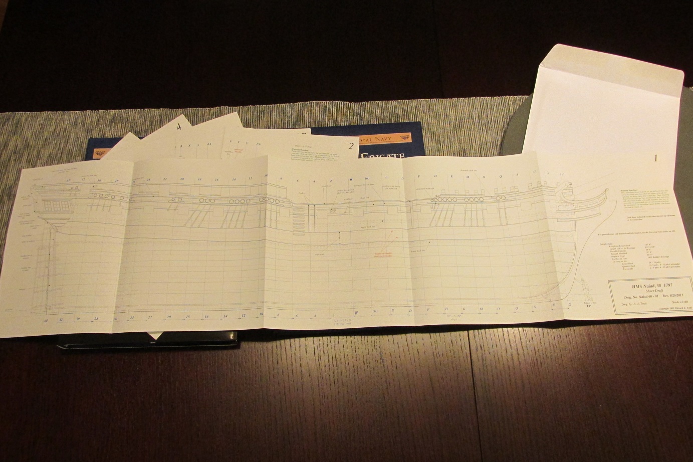 Dziś dostałem przesyłkę, HMS Naiad Edwarda Tosti. Pięknie wydane, kilkanaście arkuszy planów, dwie książki, w których krok po kroku objaśniona i pokazana jest budowa, nawet budowa narzędzi i jigów.