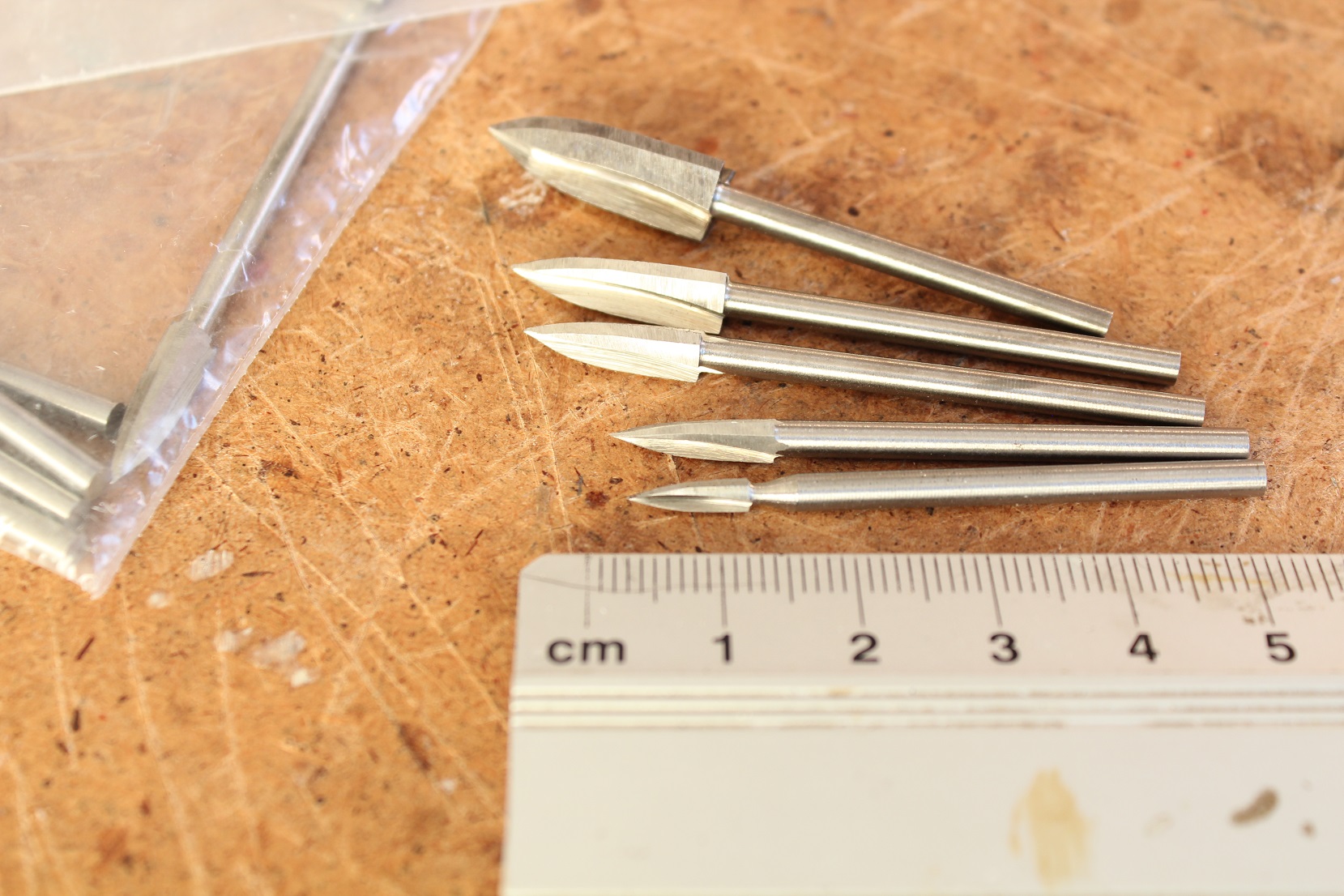 Też się mogę czymś pochwalić. Dziś z Chin przyszły długo oczekiwane frezy rzeźbiarskie do drewna. Mi najbardziej zależy na najmniejszych. Nie wiem czy są mniejsze. W dotyku są ostre