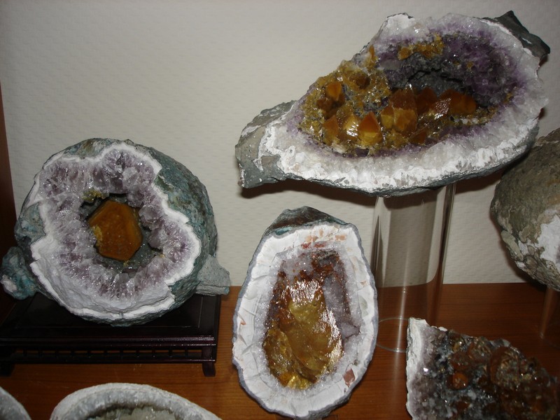 Podczas zjazdu rozgadalem sie miedzy innymi na temat mojego innego hobby, mineralogii. Jest to kolekcja lokalna z okolicy Idar Oberstein. Kwarcowe druzy z krysztalami kalcytow. Kilka przykladow: