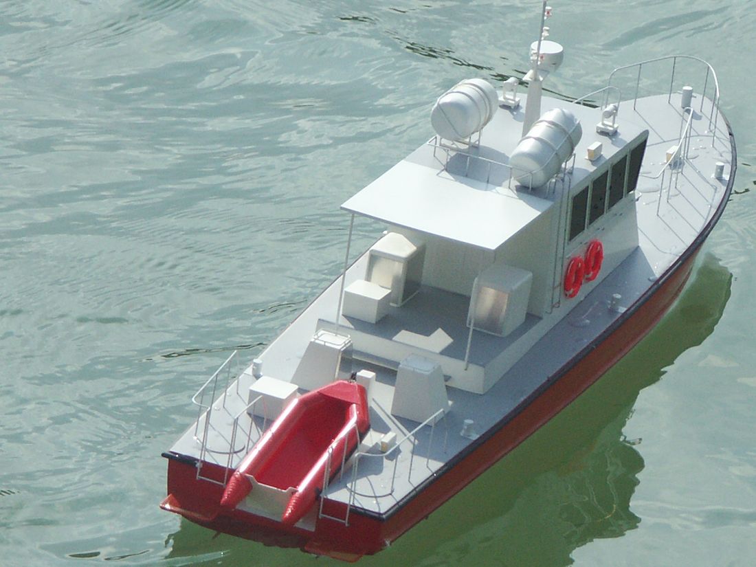 Jako przerywnik w budowie kutra hydrograficznego pomagałem synowi zbudować model pływający RC. Brakuje mu jeszcze kilku detali, ale pływać się da. Jest to model RV Redondo (filipiński okręt SAR) zbudowany w skali 1:33 o długości 63 cm i szerokości 15 cm.