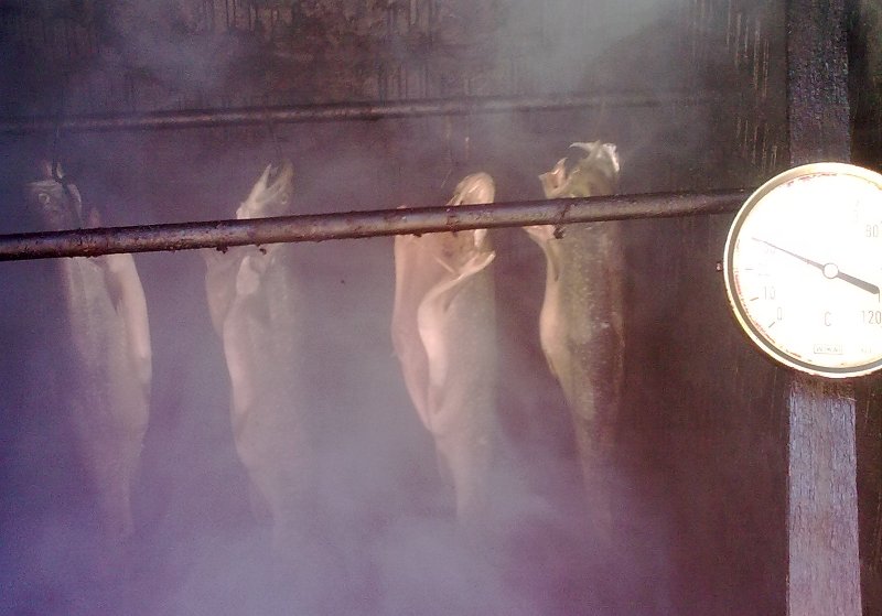 Pochwalę się swoją zadymiarką (wędzarnikiem). Pobudowałem go trzy lata temu, a w tym roku skończyłem zadaszenie nad kanałem i paleniskiem. Do tej pory wędziłem zawsze świninkę i dziczyznę, a dziś postanowiłem uwędzić se rybkę. Wyszła zarąbista.