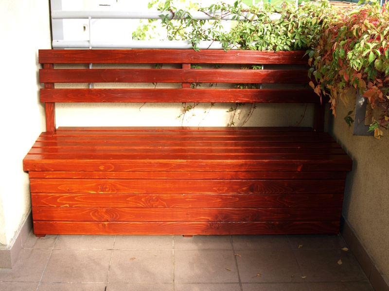 Czas wakacji nie sprzyja modelarstwu (przynajmniej u mnie), ale żeby nie było, że nic nie robiłem z drewnem, to pochwalę się ławką, którą zbudowałem na balkonie.