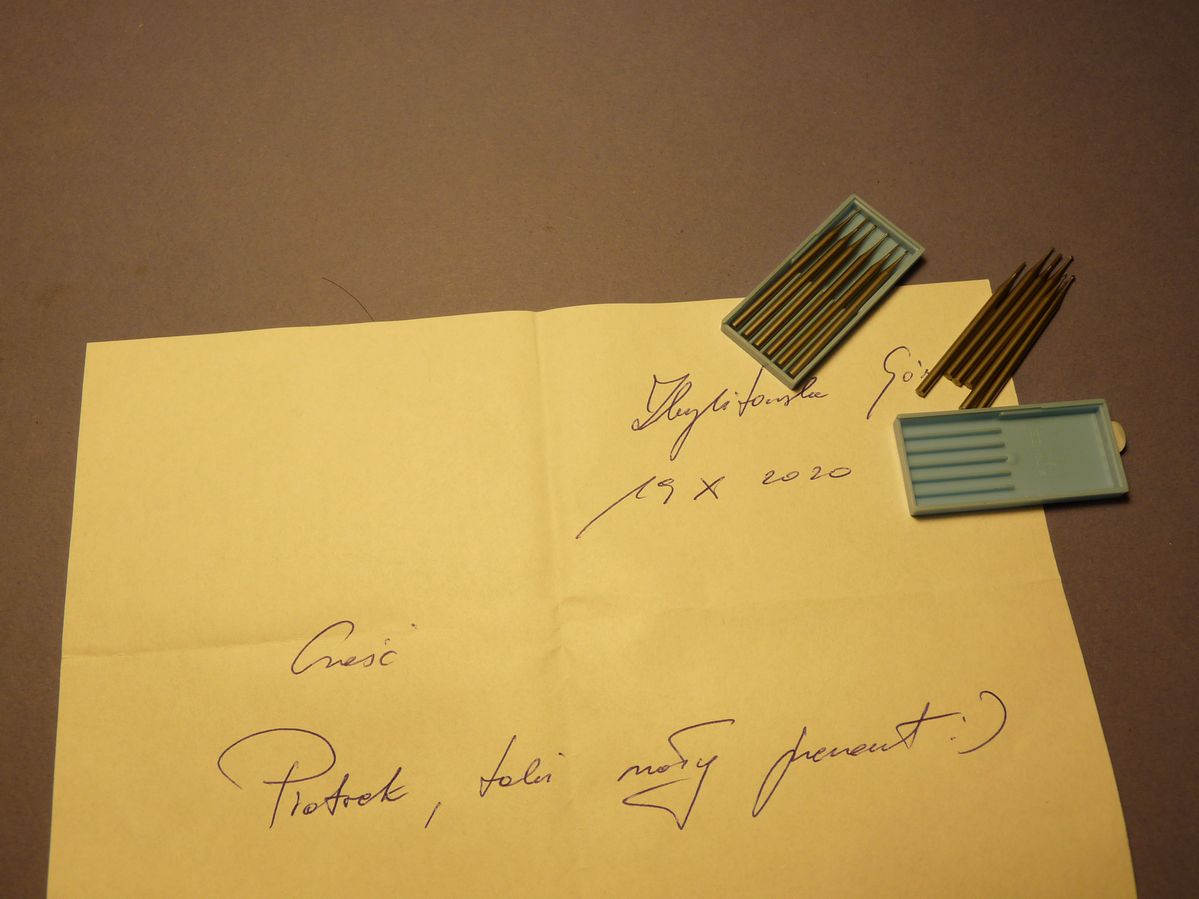 Dostałem prezent, niemieckie super frezy 0.9 Mm, rewelacja!!! Ale najważniejsze to list pisany ręcznie, ostatnio taki list to chyba 30 lat temu widziałem. Bardzo Ci Adam dziękuję, sprawiłeś mi wielką radość tym listem.
