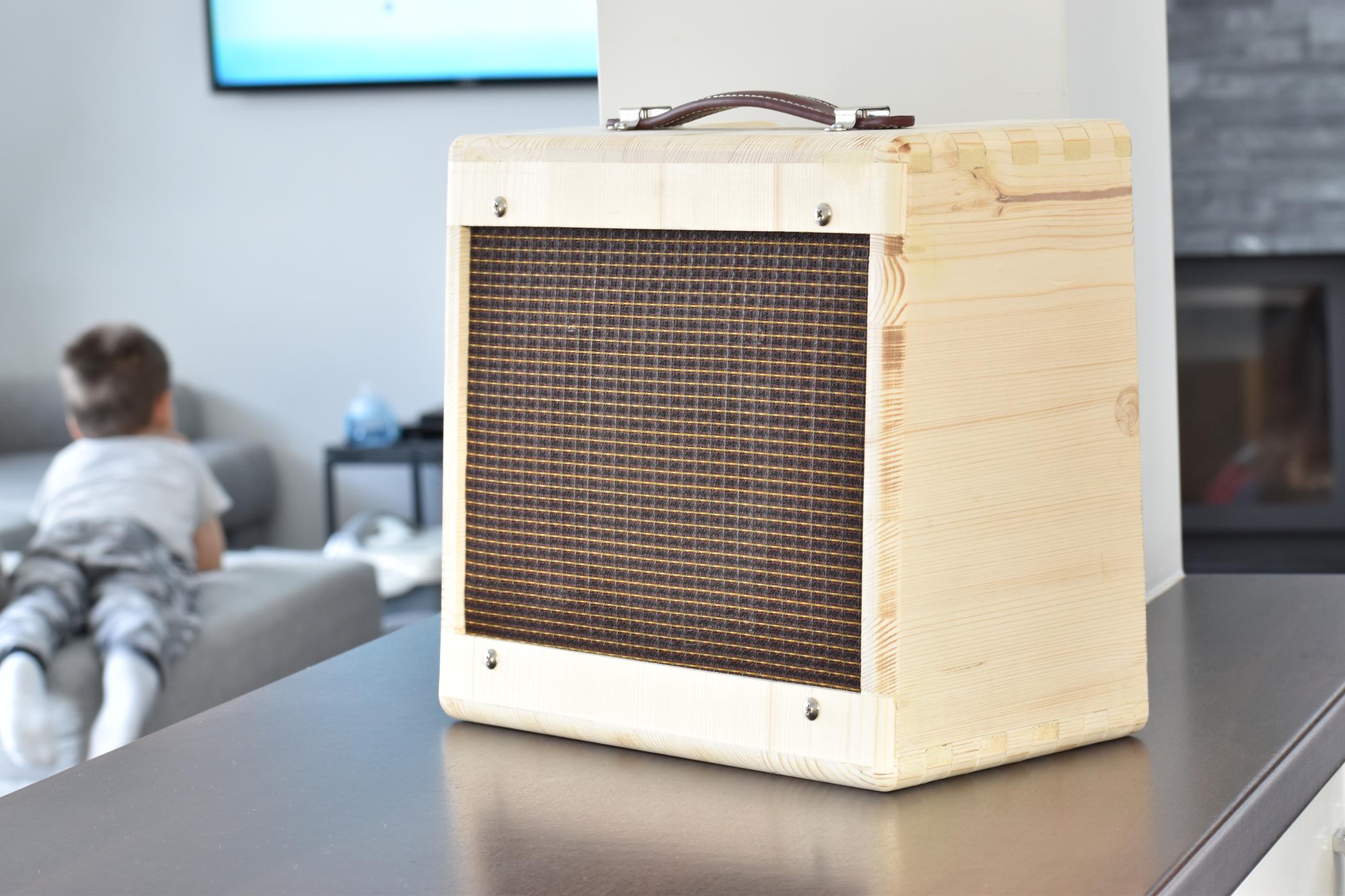 Dzięki. Głośnik jest 8 cali jak w oryginalnym „Champie” fendera. Na tapecie mam wzmacniacz większy z 12” głośnikiem. Transformator zamontowałem gotowy.