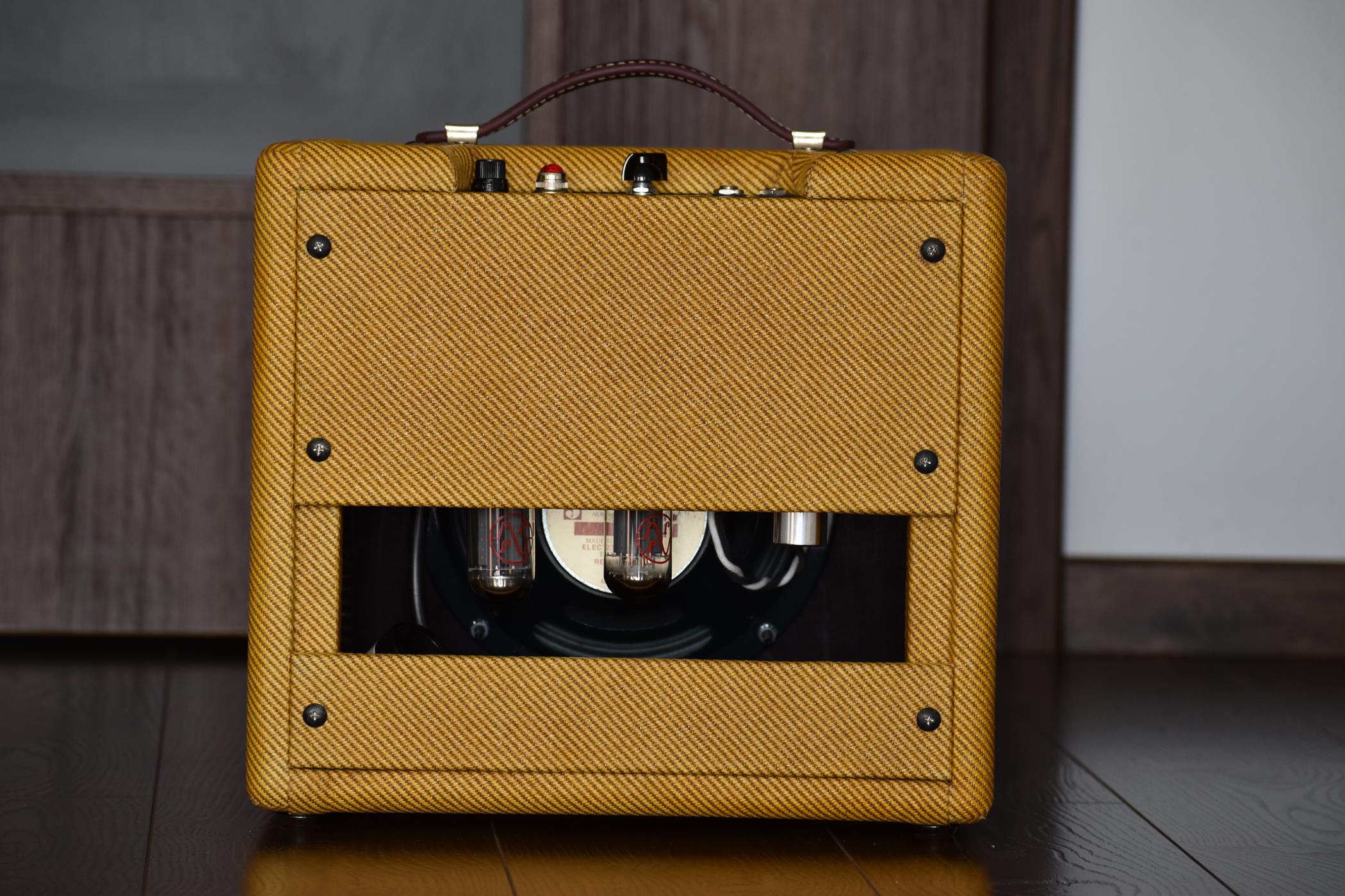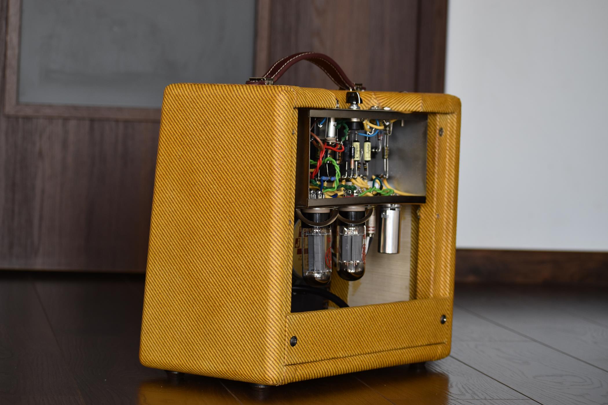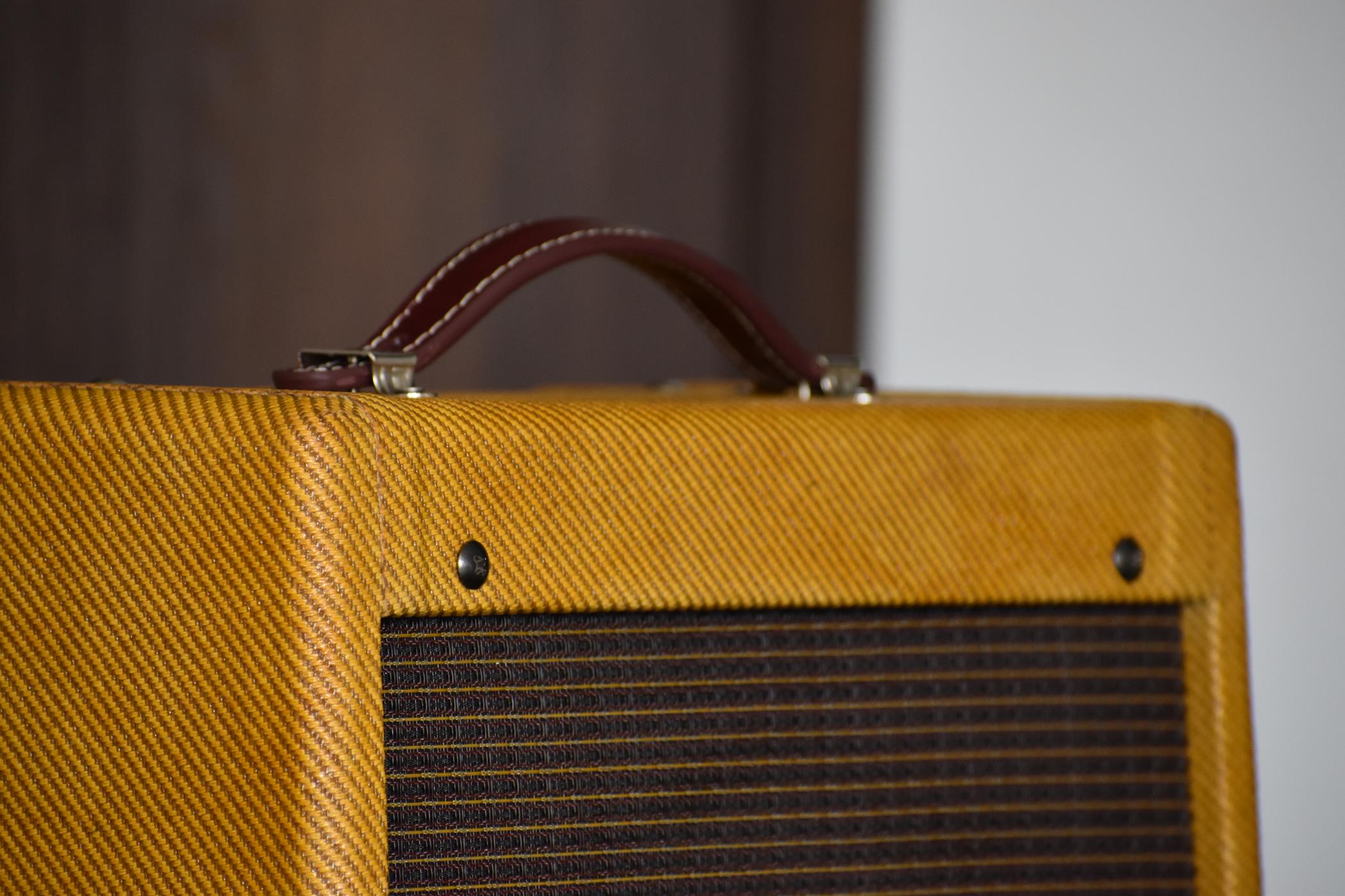 Konstrukcja lampowa 5W, jeden kanał - klon Fendera z lat 50-tych, wykonany taką samą metodą, bez płytek drukowanych.