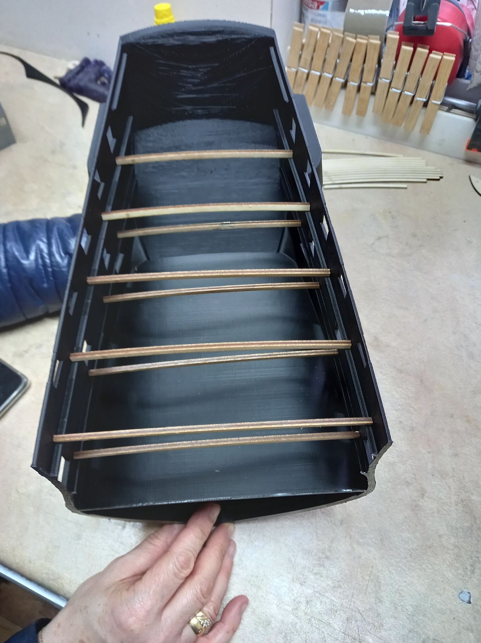 Cześć , można pomyśleć ale to musiało by być pewne że będziesz zainteresowany , troche roboty jest przy projektowaniu no i tydzień drukowania . No kadłubik ładnie się prezentuje , jakim klejem kleiłeś listewki do plastykowego kadłuba ?