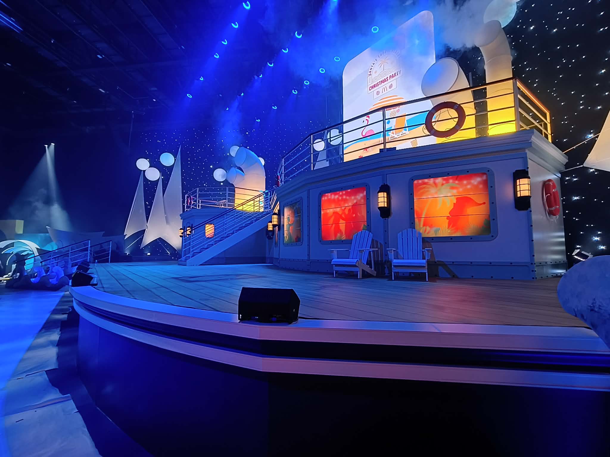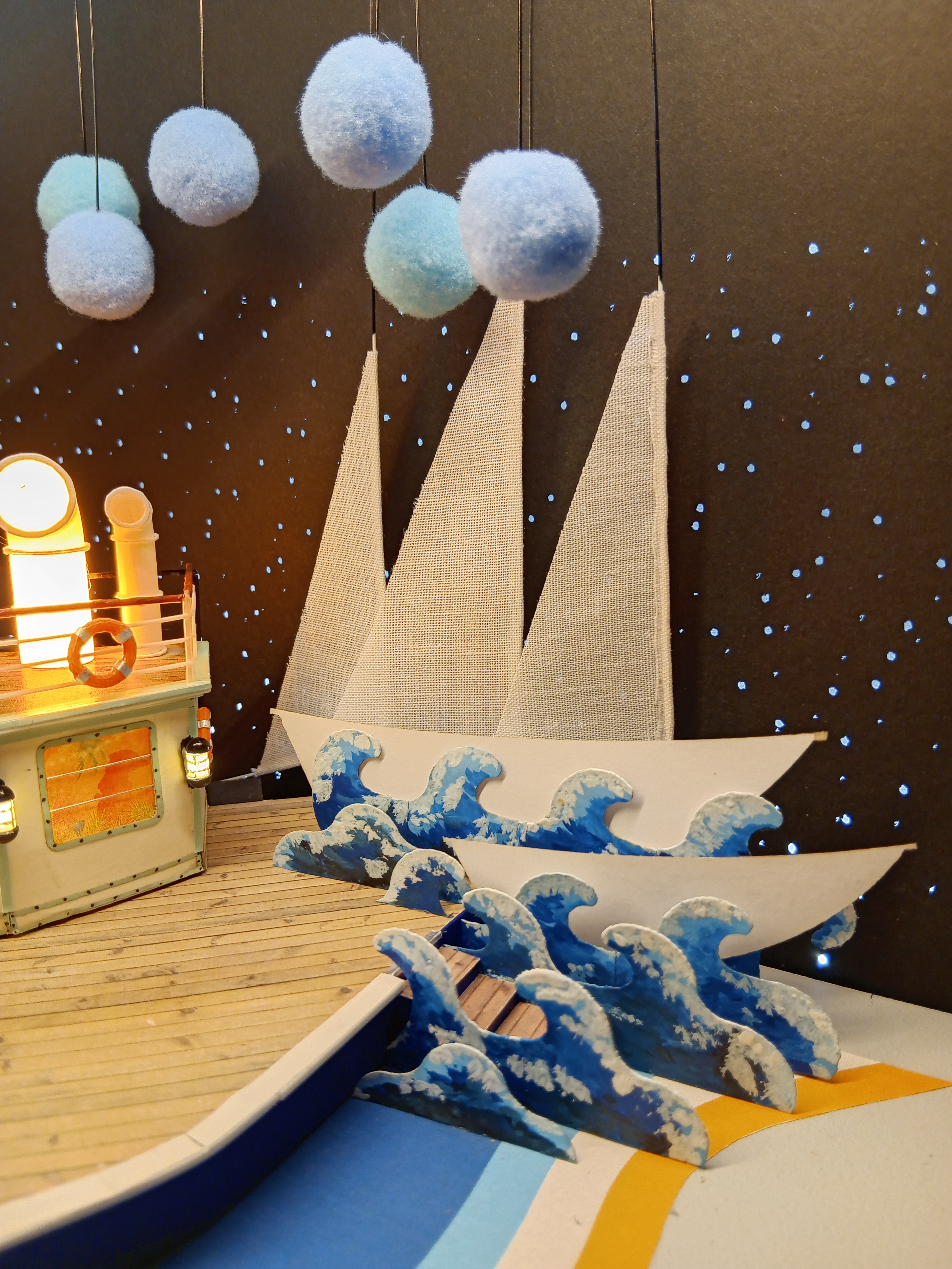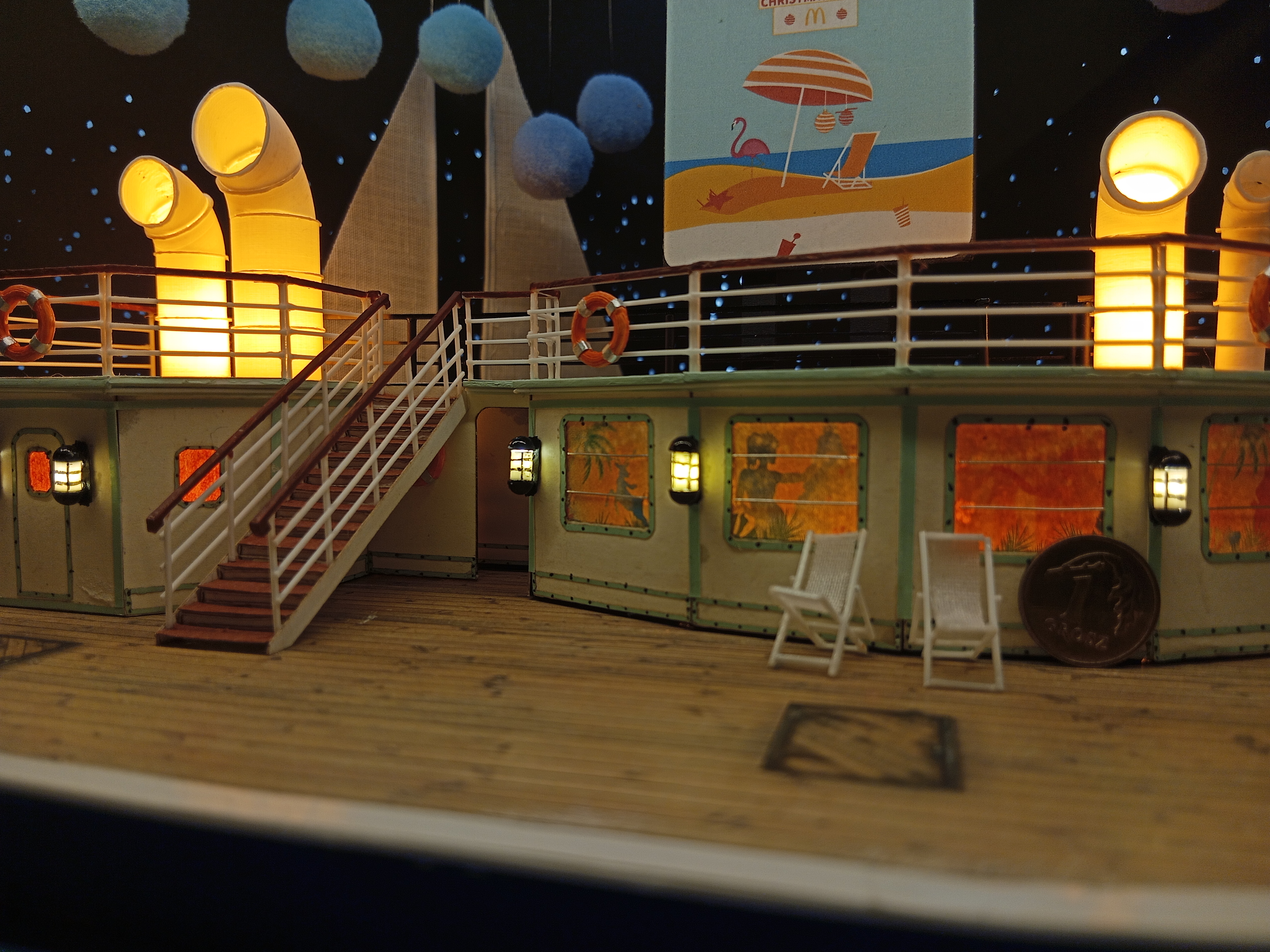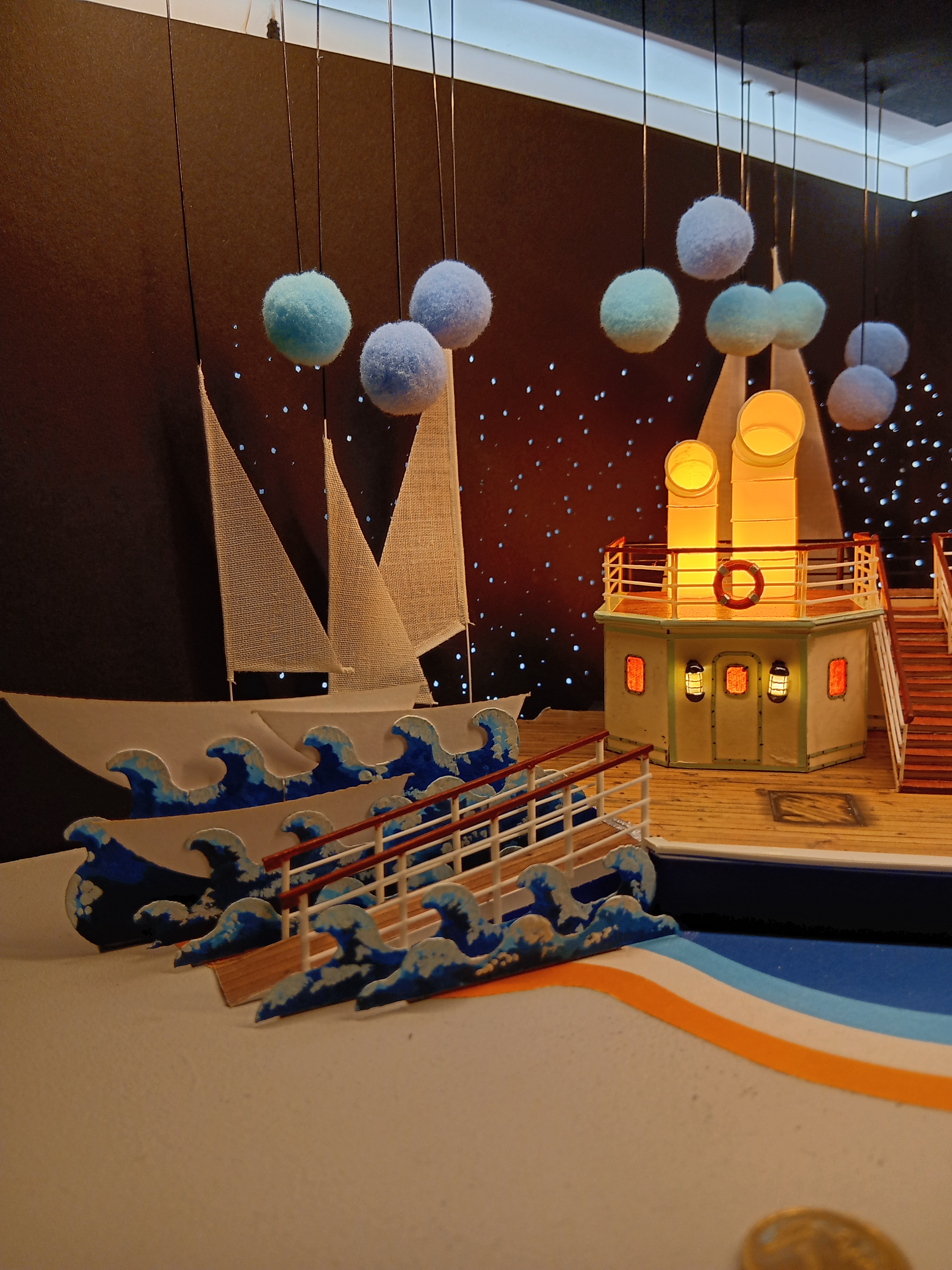 zostałem z racji zawodowych (zajmuję się obecnie scenografią eventową) zobligowany do wykonania makiety sceny, którą budowaliśmy pod koniec zeszłego roku na imprezę bożonarodzeniową dla poważnego gracza w branży hamburgerowej... Ot, klient sobie zamówił modelik w skali 1:75, a że tematyka marynistyczna poniekąd, to pozwalam sobie zamieścić rezultat działań.