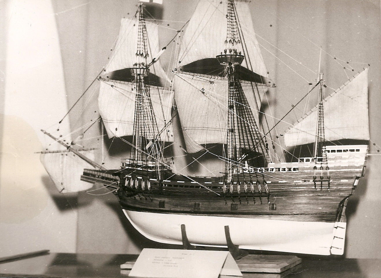 Zgodnie z obietnicą odszukałem zdjęcie zresztą jedyne jakie się zachowało wykonanego w latach 90 tych modelu żaglowca Mayflower. Model budowałem na podstawie Planów modelarskich. Rok pracy i 2x na MP w klasie C-Naviga srebrny medal z liczba 87 pkt. Szkoda że cyfrowe zdjęcia wtedy nie istniały bo było by więcej fotek