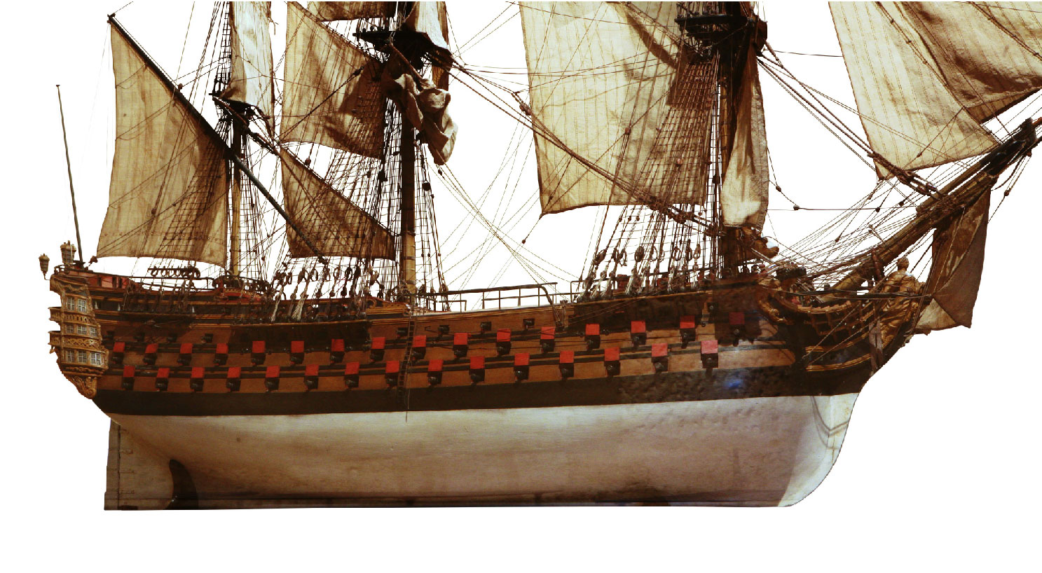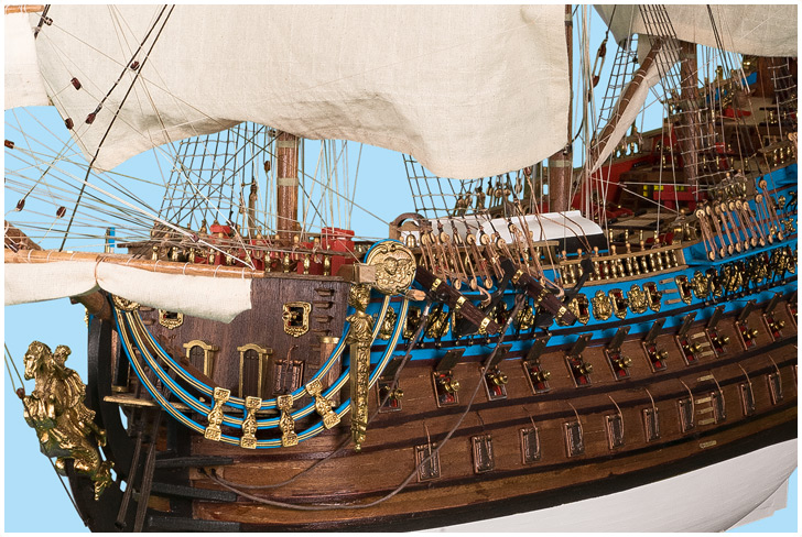 jego pierwowzorem jest model przypisywany ST 140 działowy (z XVIII wieku) uważany za San Antonio lub prawdopodobnie San Carlos, zaprojektowany w Hawanie, lecz nigdy nie wybudowany (był również nazywany Real de Burbon) i mimo uproszczeń (m.in. inna ilość okien) moim zdaniem jest lepsze od tej metalowej ozdoby pierwszej edycji.