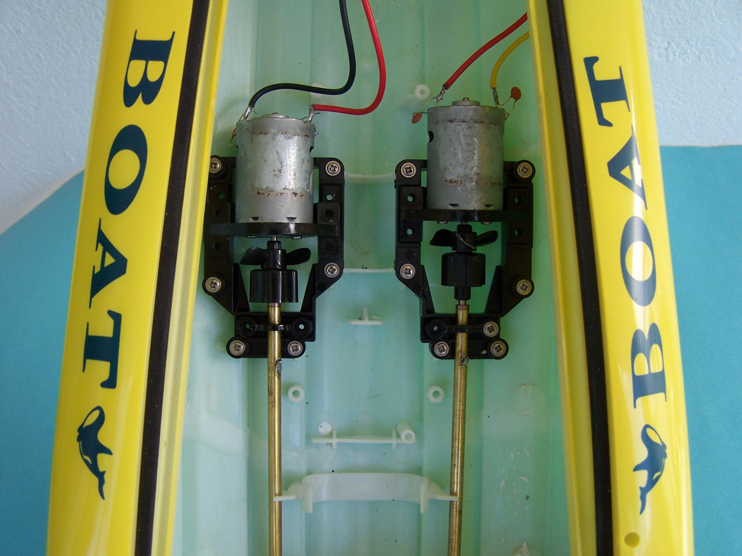 Wpadł mi w ręce malutka motorówka długość 55 cm . taka chińska zabawka sterowanie 27 herców napęd dwa silniki przód tył , sterowanie kierunk różnicą obrotów silnika .