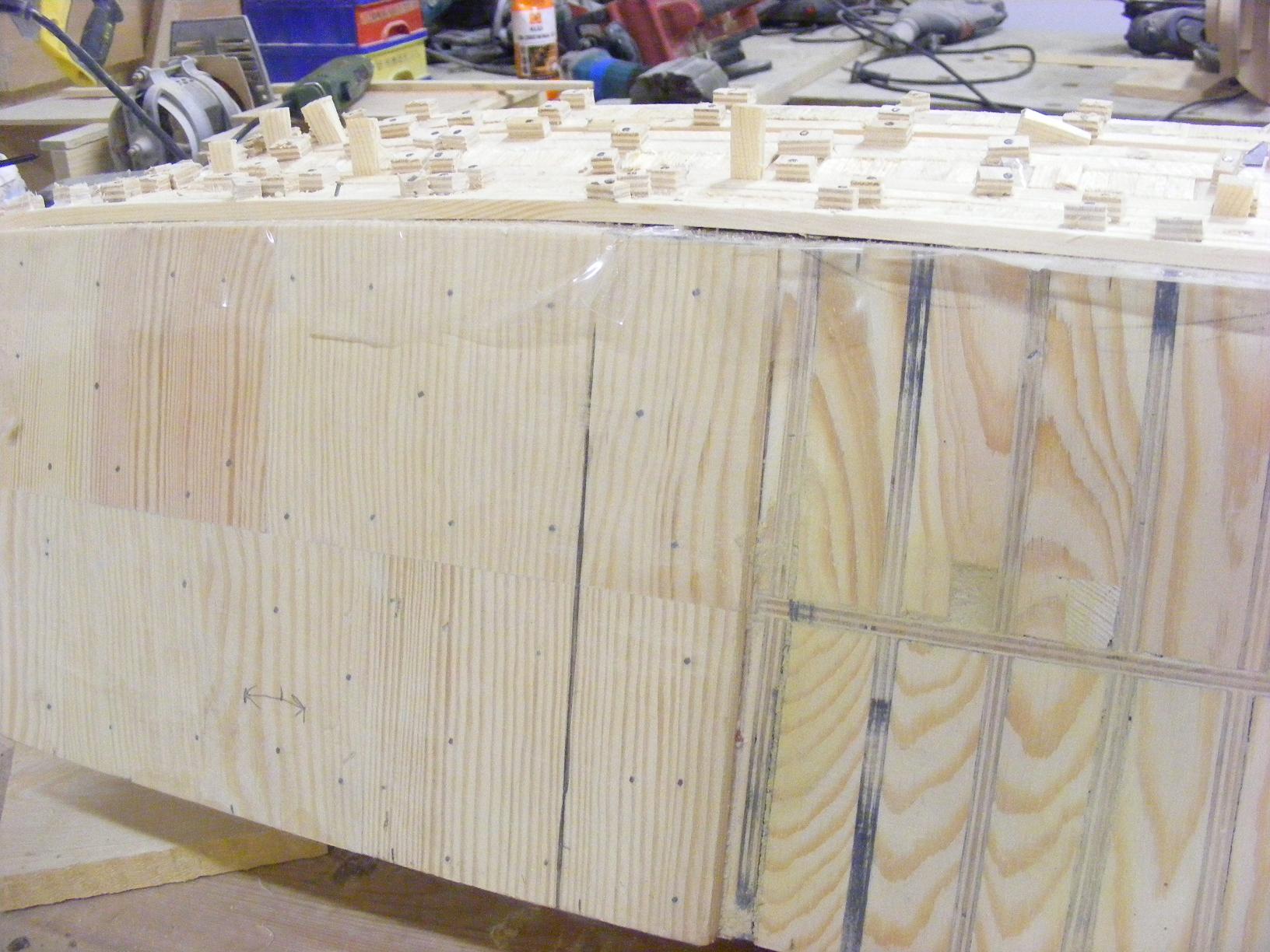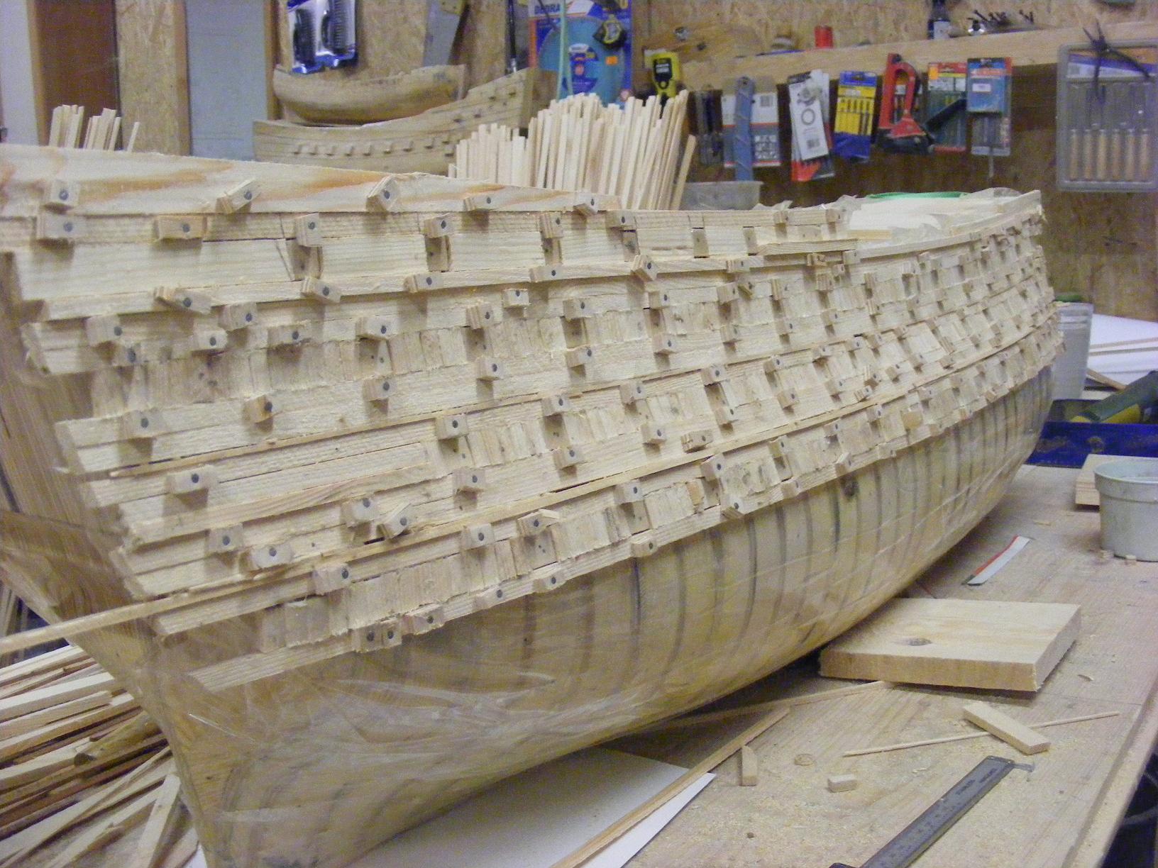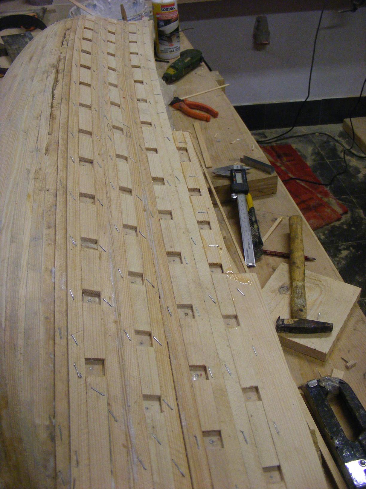 Poniżej tych listew aż do stępki będą już szły listwy 3 x 12 mm trzy warstwy i jedna na tych co już są położona .