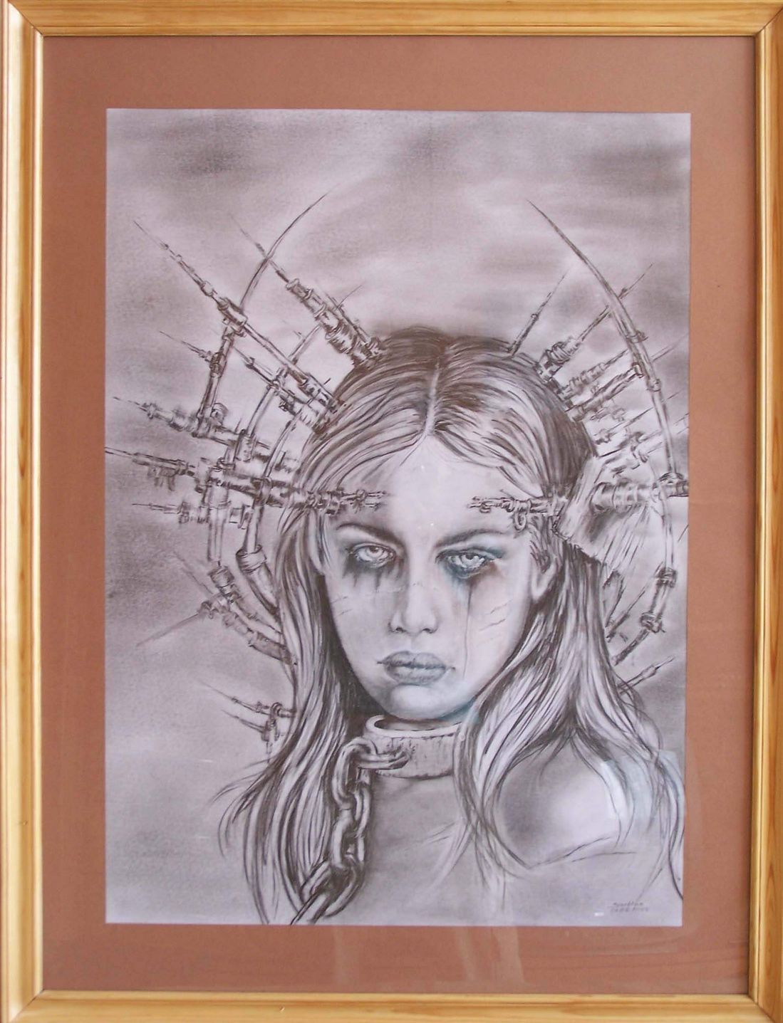 Rysuje ze zdjęć, ale nie są to przypadkowe fotografie, wybieram je z setek zdjęć, które muszą coś mówić, muszą mieć swoją historię. Np. ostatnie zdjęcie to chłopiec, który jest ofiarą wojny w Czeczeni a „mój” Jan Paweł II wisi w szkole podstawowej imienia Jana Pawła II w Polkowicach. :)