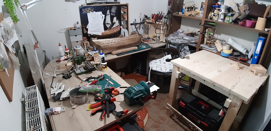Jak tak patrzę z perspektywy czasu to w chwili dzisiejszej zrobiłbym bym go trochę inaczej, a mianowicie wykonał go w sposób zbliżony do strugnicy stolarskiej, m.i.n dodałbym "dziury" pod ściski i deski które tworzą blat w innej płaszczyźnie....