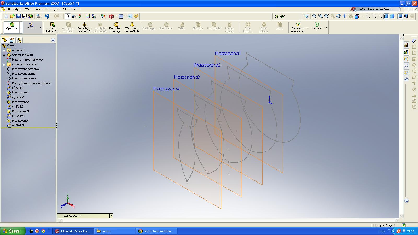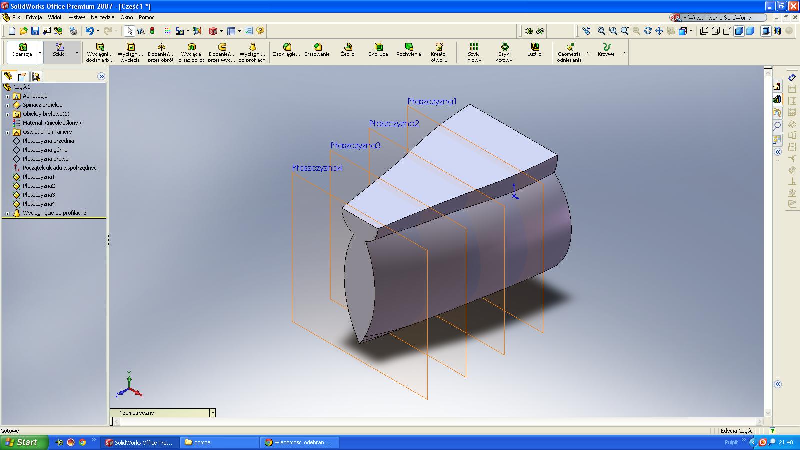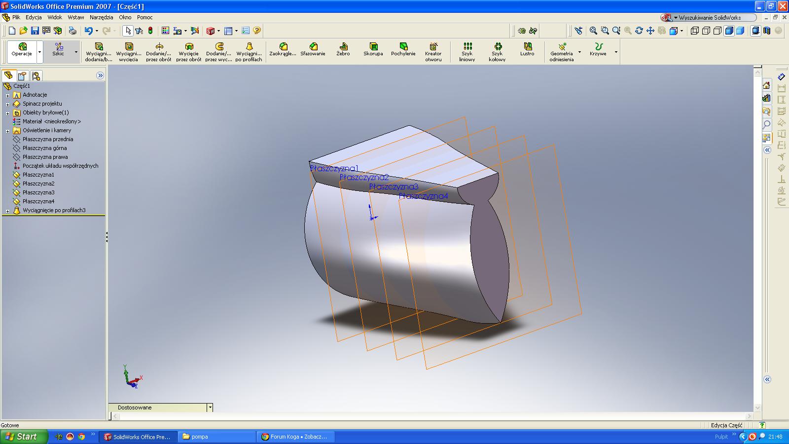 miałem to podesłać na PW dla kolegi romanov aby się nie zniechęcał bo to nie jest takie trudne wbrew pozorom, ale zrugany nieco przez radka ;) wrzucam kilka rysuneczków jak to leci kolejno np: w SW, przekroje były wymyślone ot tak i na bryle widać że nie ma płynnych kształtów co wymusza korekty, myślę że stworzenie tego kadłuba będzie nie tyle trudne co pracochłonne