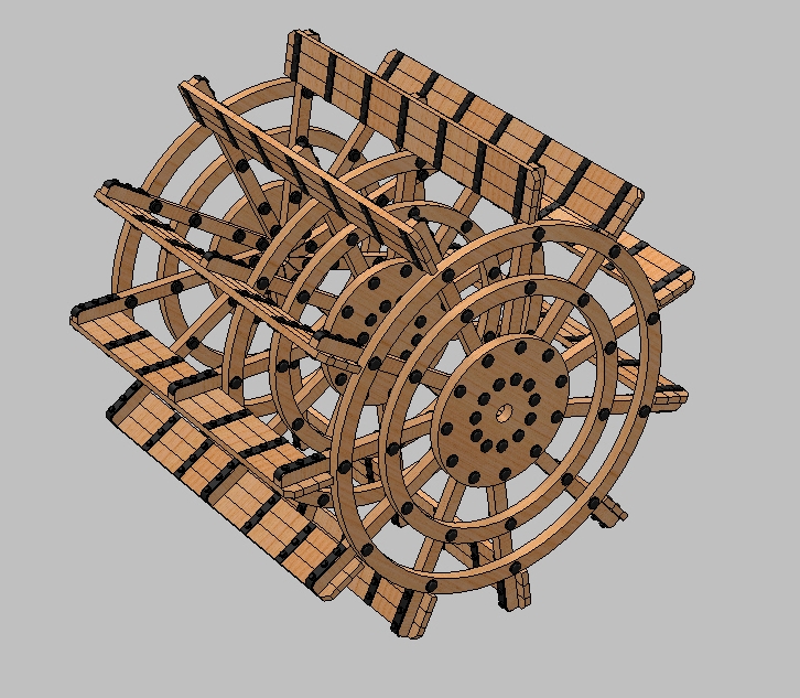 Wojtku koło napędowe bardzo ładnie rozrysowałeś ale mam wątpliwości czy ono całe było zbudowane z drewna , myślę ze nie , samo drewno chyba nie wytrzymało na tych zdjęciach choć to pewnie rekonstrukcje widać ze tylko same „łopatki” były zrobione z drewna