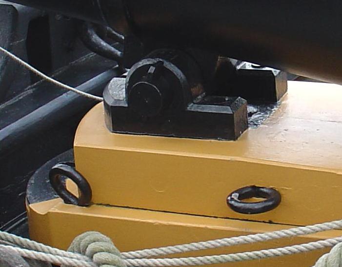 W karonadzie zastosowałeś czopy mocujące z klasycznej armaty.Karonada miała jeden ruchomy czop przechodzący na wylot przez otwór wypustu mocującego odlanego razem z lufą i klinowany.