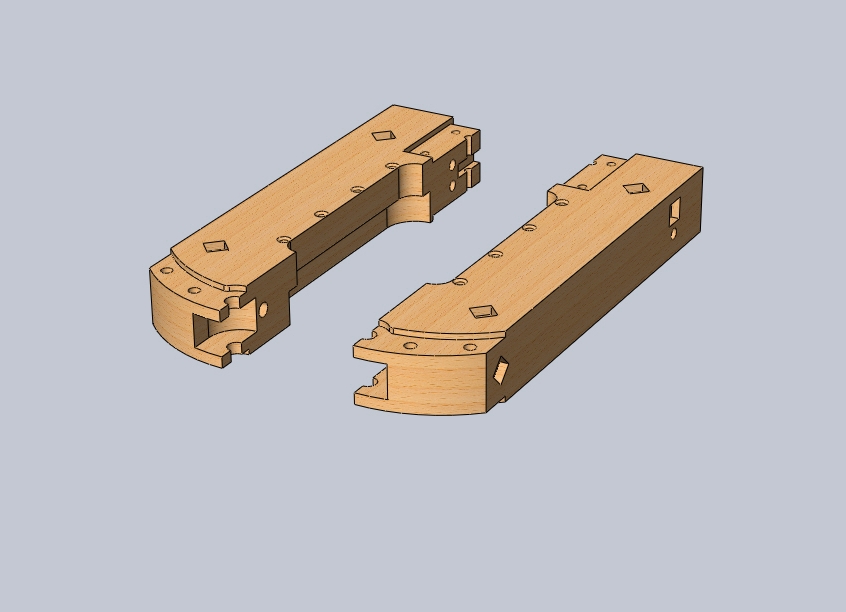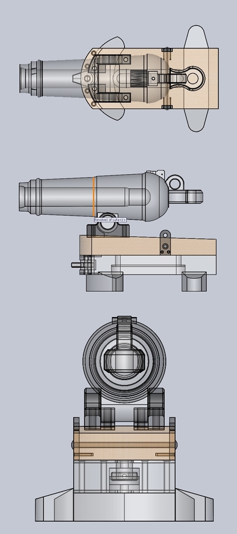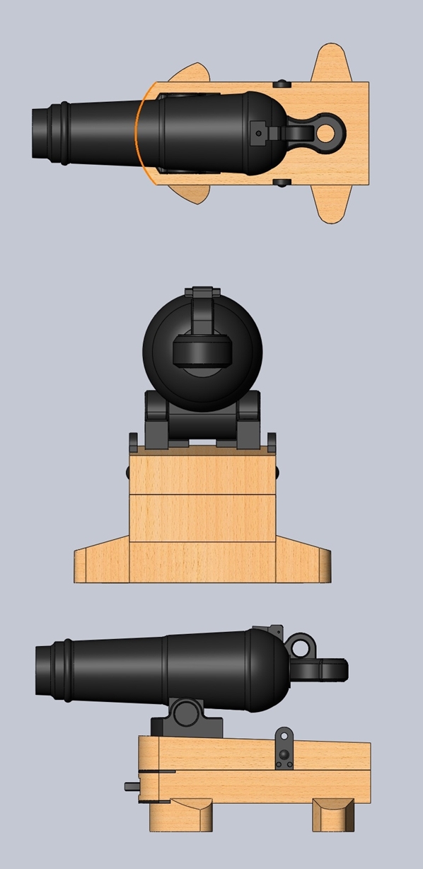 W karonadzie zastosowałeś czopy mocujące z klasycznej armaty.Karonada miała jeden ruchomy czop przechodzący na wylot przez otwór wypustu mocującego odlanego razem z lufą i klinowany.