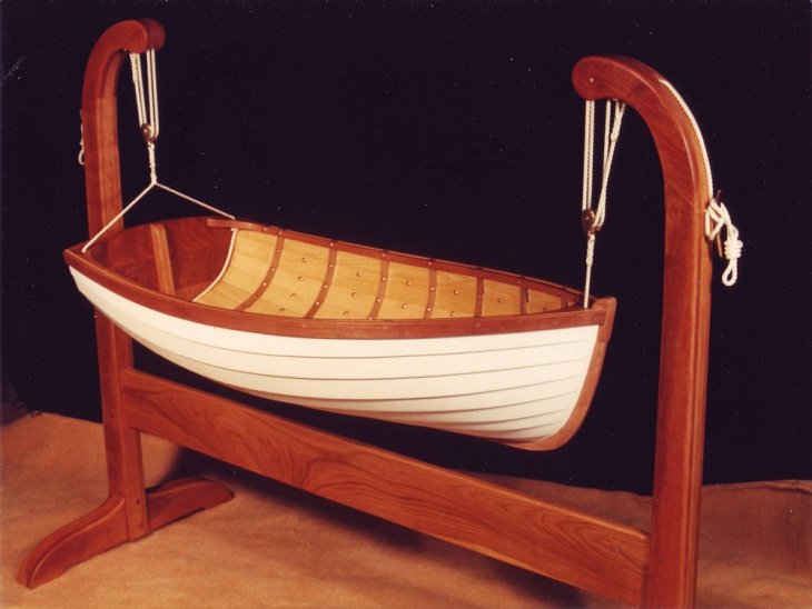 Polecam najpierw wyrysowanie sobie na papierze w skali 1:1 dlugiej osi kadluba, tj. od dziobu do rufy i nastepnie na niej - swego rodzaju kregoslupie, wyrysowac biegnace prostopadle don wszystkie wregi, od tej najszerszej w "srodokreciu" do stopniowo sie zwezajacych ku "dziobie" i "rufie" onej kolyski. Nie zapomnij tez uwzglednic gabaryty, tj. tak dlugosc jak i szerokosc "ladunku" owej kolyski, ktora nie bedzie niczym innym, jak modelem drewnianym jednostki plywajacej w uproszczonej nieco konwencji plank-on-frame (planka-na-wredze).