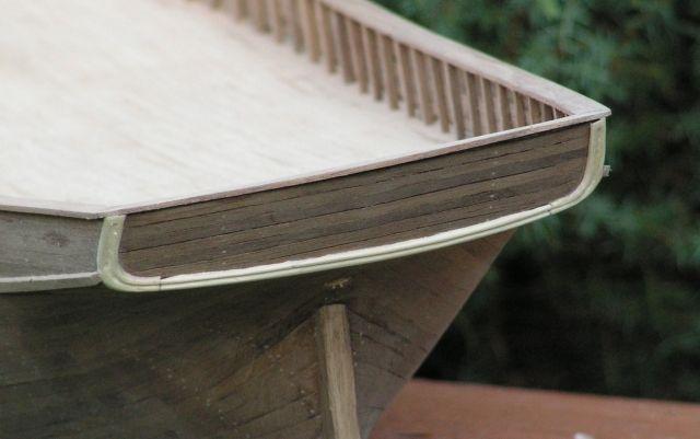 Jeśli chodzi o plany to raczej wszyscy mamy takie same. Odbojnice wykonane są z jednej listewki o wymiarach 3.5 na 2 mm, uklada się naprawdę super, masz rację ja ją ulożylem trrochę inaczej niż u Romka i na planach ale tylko w części rufowej poza tym biegnie tak jak u Romka. Przeglądając relację Romka to wydaje mi się że u niego są szersze niż u mnie. Jeśli chodzi o tempo prayc to już inna historia.