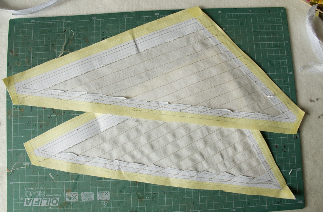 Nadszedł czas na szycie żagli. Zmarnowałem trochę materiału i czasu zanim żagle w miarę przyzwoicie wyszły.