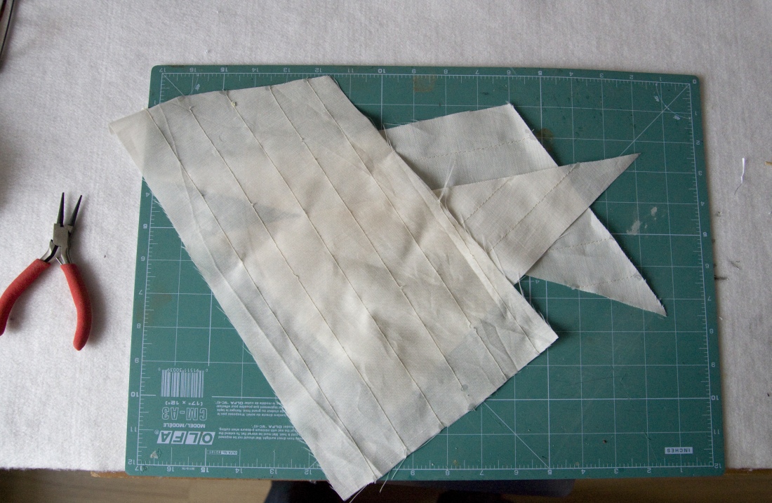 W pierwszej wersji użyłem materiału podobnego do batystu, ale w modelu przy tej skali okazał się zbyt delikatny.