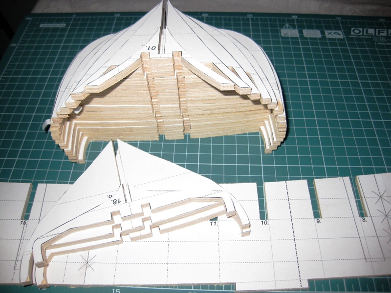Jak złożę szkielet w całość to podejmę ostateczną decyzję, ale na teraz skłaniam się przynajmniej do pogrubienia wstawkami drewna większości wręg. Oczywiście rufa i dziób na pełne wypełnianie. No zobaczymy jak pójdzie, bez sensu teraz teoretyzować.