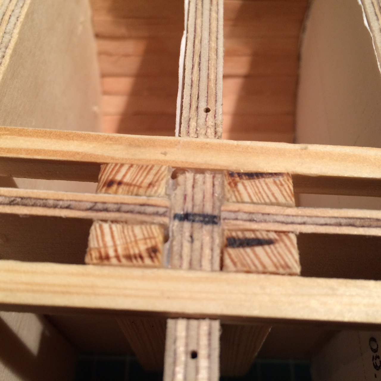Wkleiłem wzmocnienia pod maszty i przybyło trochę listewek poszycia. Jutro rozpoczynam projekt NSS-650 standard, więc budowa K&M niestety jeszcze zwolni, ale cały czas idzie powoli do przodu:)