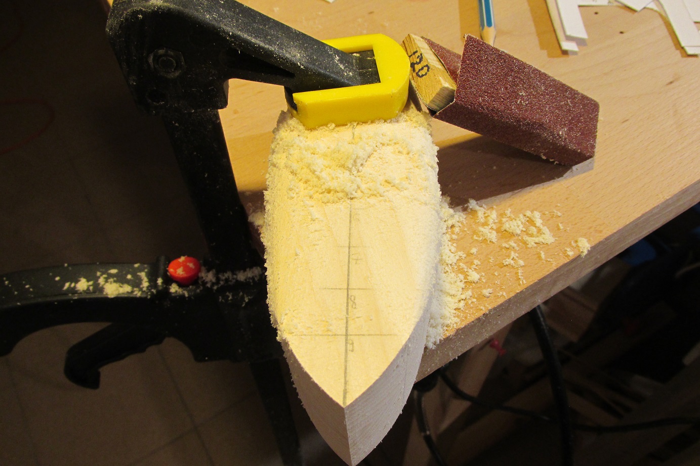 Walczę z szalupą. Kopyto robiłem z lipy, wręgi będę robił z listewek gruszy 2x2 milimetry.