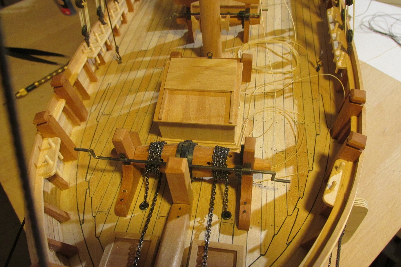 Dzięki Adamie. Płetwa sterowa i rumpel są zdejmowane. Rumpel i tak miał być zdejmowany bo inaczej nie byłoby miejsca na bloczek mocujący do żurawika, ale płetwa miała zostać. Wobec tego co piszesz, płetwa będzie leżała w szalupie, jak ktoś będzie chciał popływać to sobie ją założy :-)