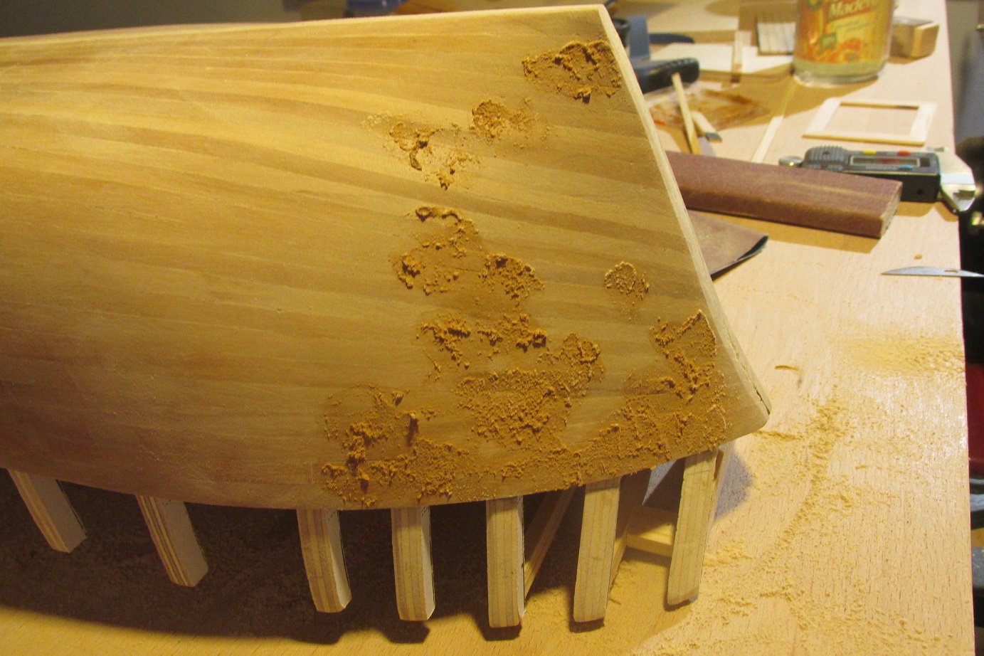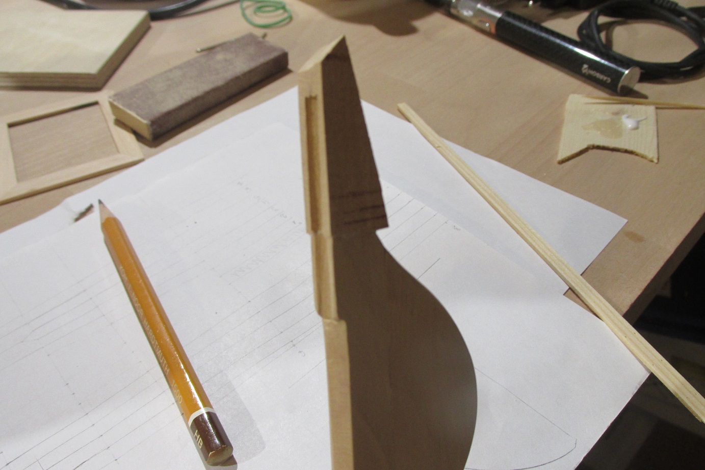 Wziąłem się również za stewy, kil i kil fałszywy. Tutaj dziobowa.